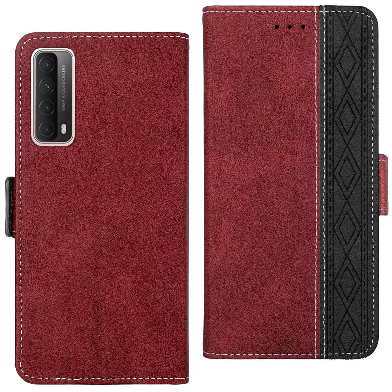 For Huawei P smart 2021 Stitching Side-Magnetic RFID Leather Phone Case(Red)