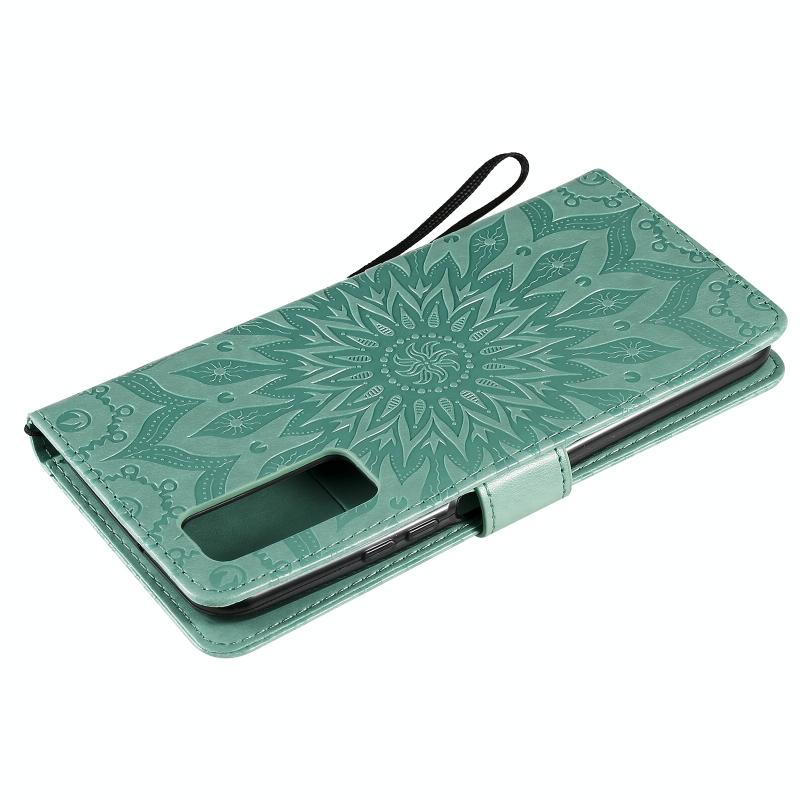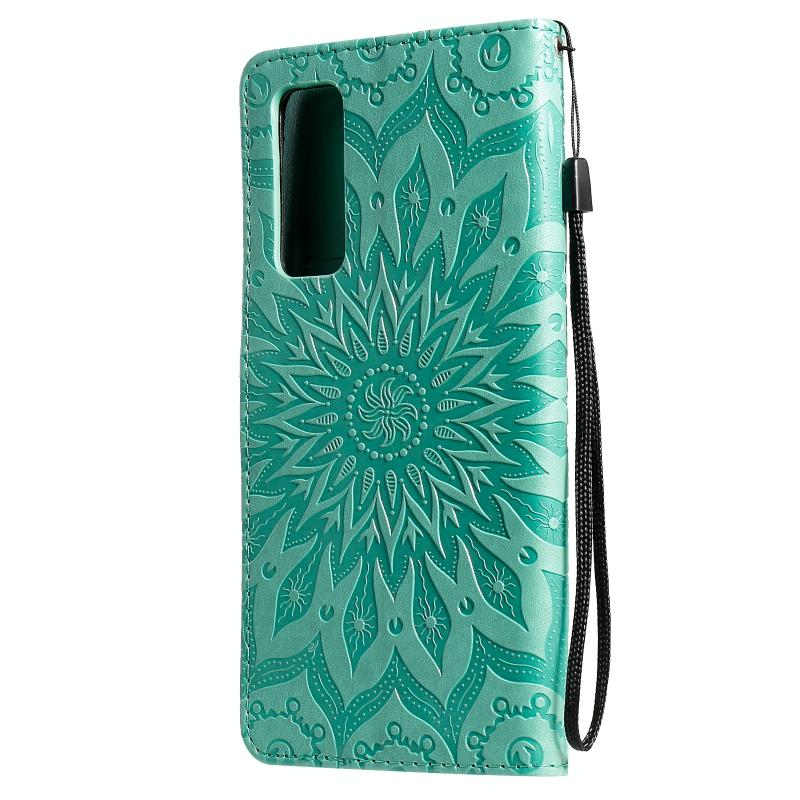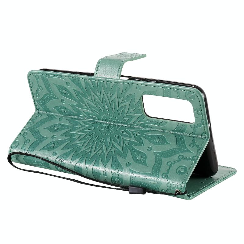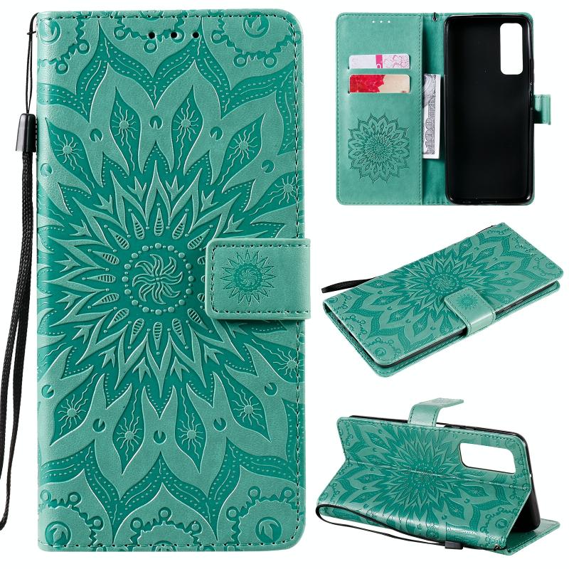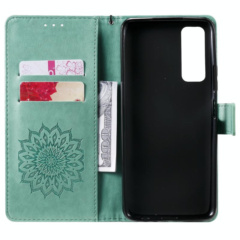 For Huawei P Smart 2021 Sun Embossing Pattern Horizontal Flip Leather Case with Card Slot & Holder & Wallet & Lanyard(Green)