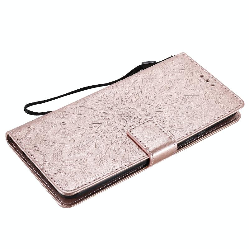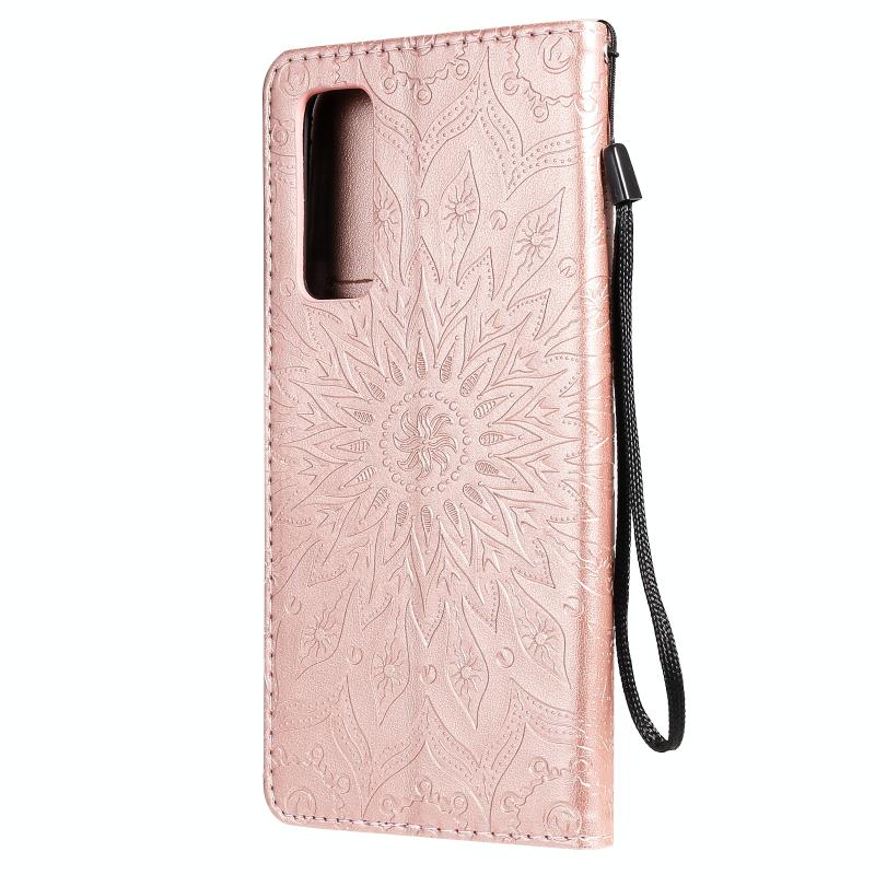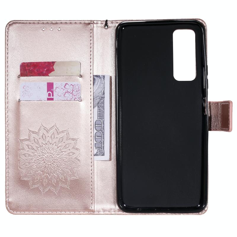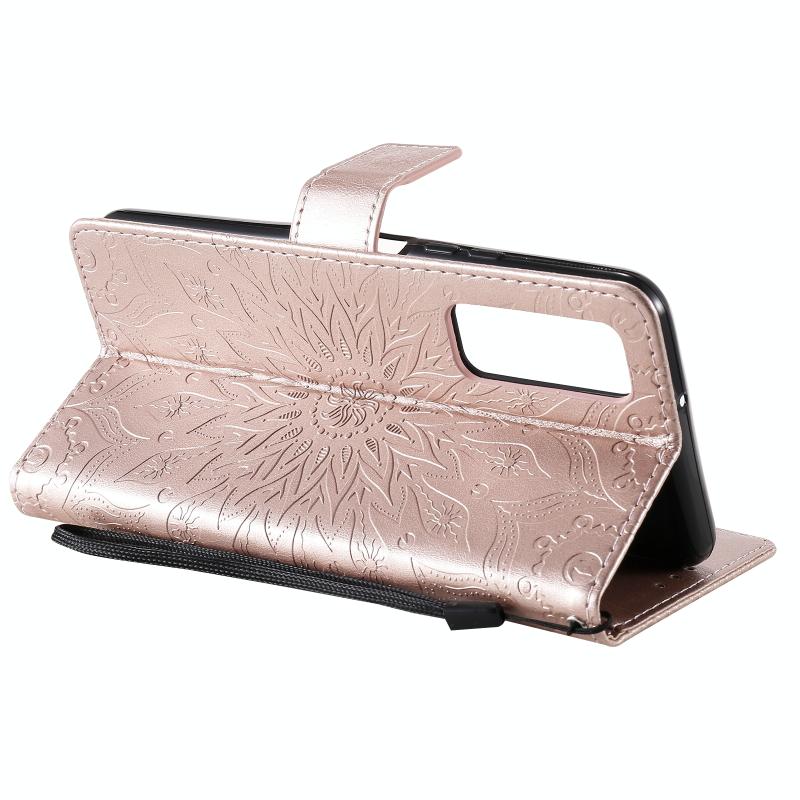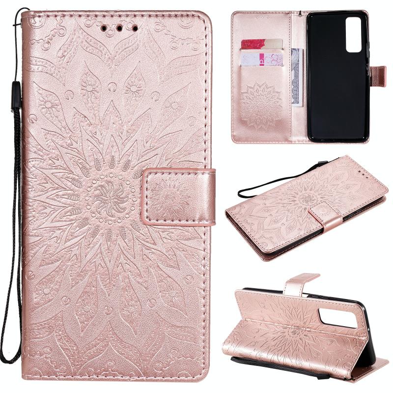 For Huawei P Smart 2021 Sun Embossing Pattern Horizontal Flip Leather Case with Card Slot & Holder & Wallet & Lanyard(Rose Gold)