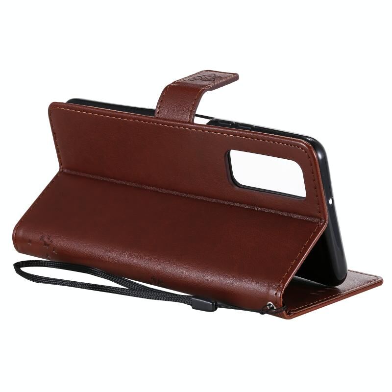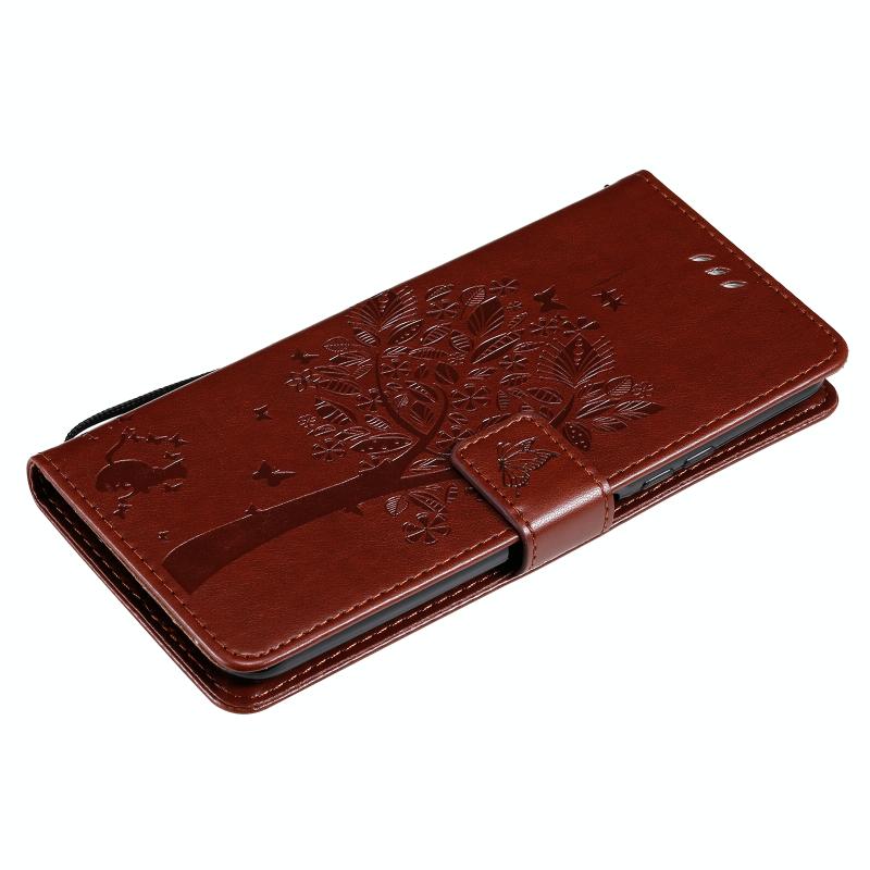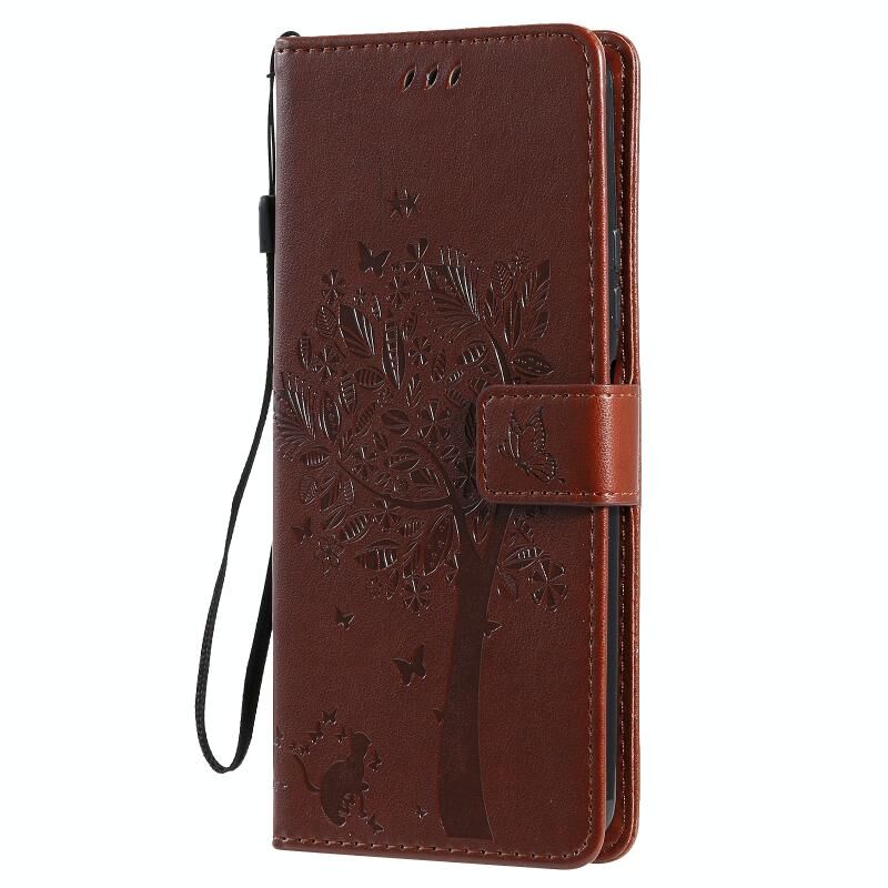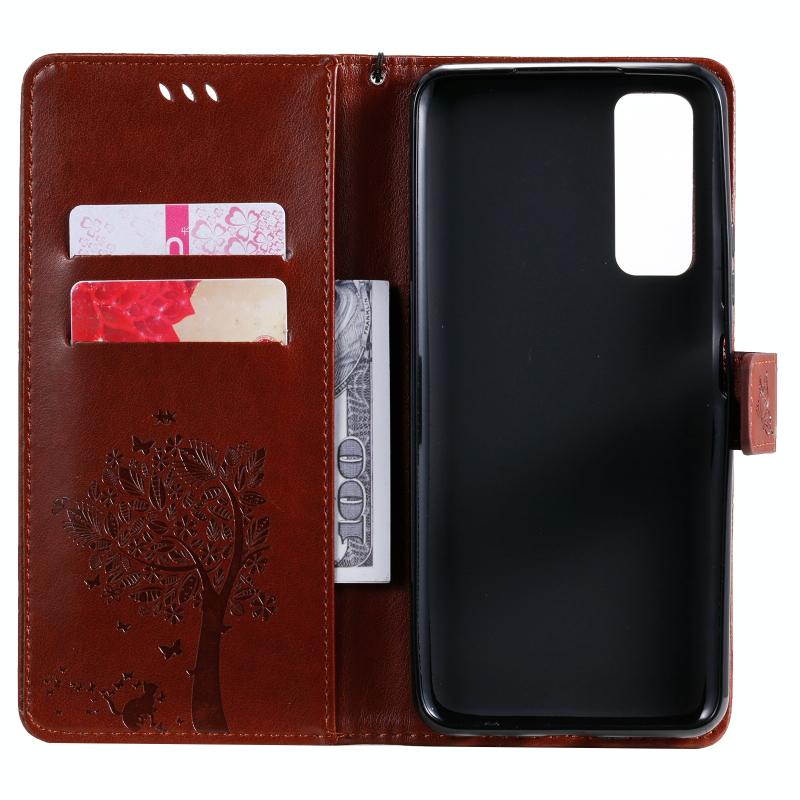 Θήκη Huawei P Smart 2021 από Δερματίνη PU με Οριζόντιο Άνοιγμα, με Σχέδιο Δέντρου & Γάτας, Εκτύπωση με Πίεση, με Στήριξη, Θήκες Καρτών, Πορτοφόλι & Λουρί (Καφέ)