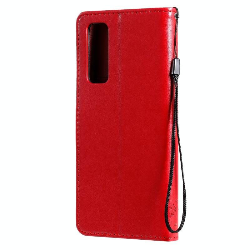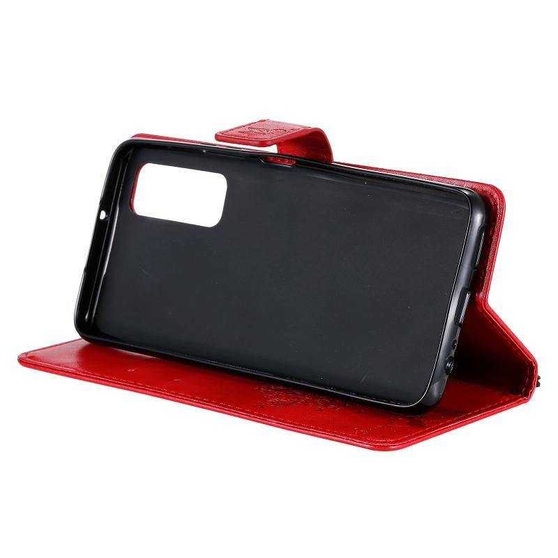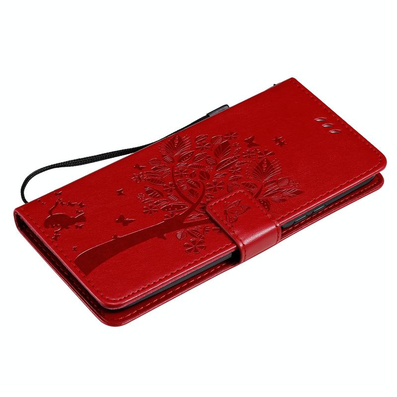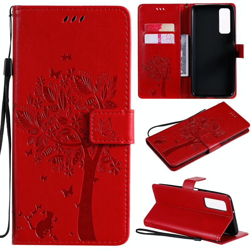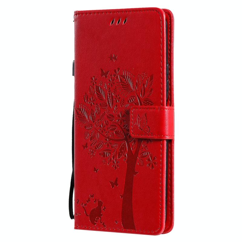Θήκη Huawei P Smart 2021 με σχέδιο Δέντρου & Γάτας, εκτύπωση με θερμοτύπηση, οριζόντια αναδίπλωση, από δερματίνη PU με βάση στήριξης & θήκες καρτών & πορτοφόλι & κορδόνι (Χρυσό)