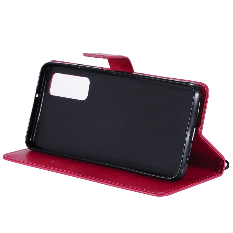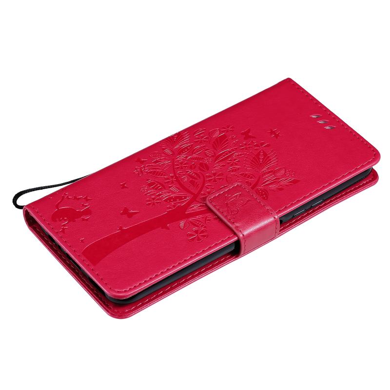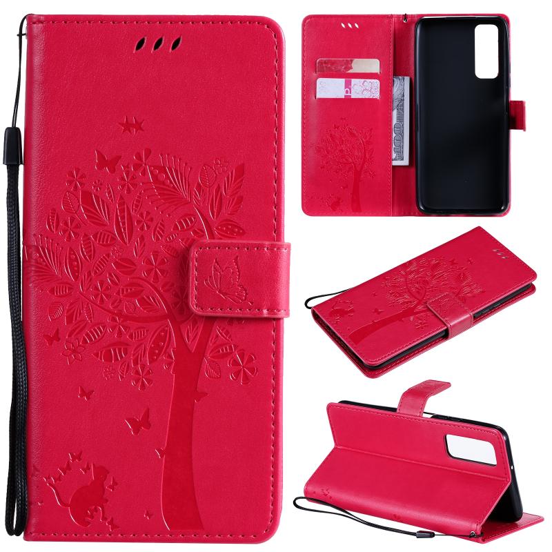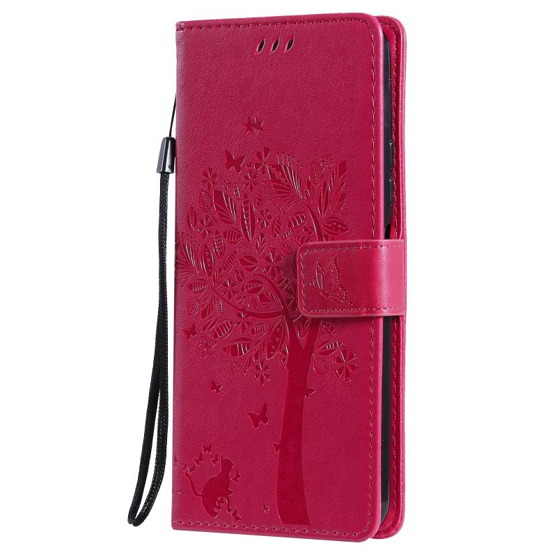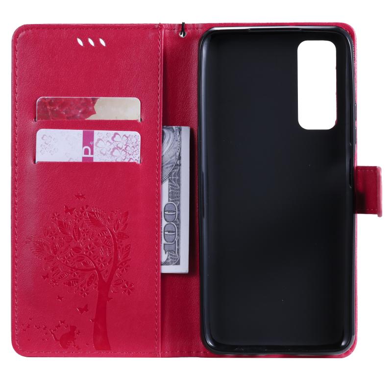 Θήκη Huawei P Smart 2021 με σχέδιο Δέντρου & Γάτας, εκτύπωση με θερμοτύπηση, οριζόντια αναδίπλωση, από δερματίνη PU με βάση στήριξης & θήκες καρτών & πορτοφόλι & κορδόνι (Χρυσό)