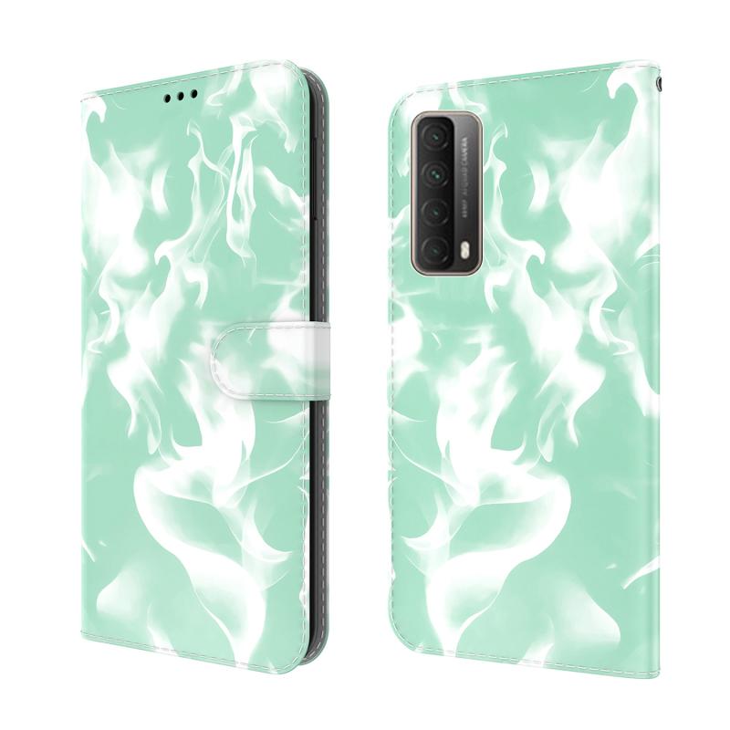 Θήκη δέρματος οριζόντιας αναδίπλωσης για Huawei P smart 2021 / Y7a με σχέδιο Cloud Fog, με βάση στήριξης & υποδοχή κάρτας & πορτοφόλι (Κόκκινο) (AutSpace)