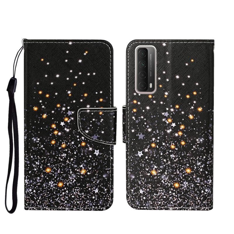Θήκη δέρματος οριζόντιας αναδίπλωσης με σχέδια ζωγραφικής, βάση στήριξης & θήκες καρτών & πορτοφόλι για Huawei P Smart 2021 / Y7a (Μαύρο Αστέρι Πέντε Άκρων) (idewei)