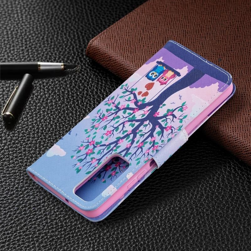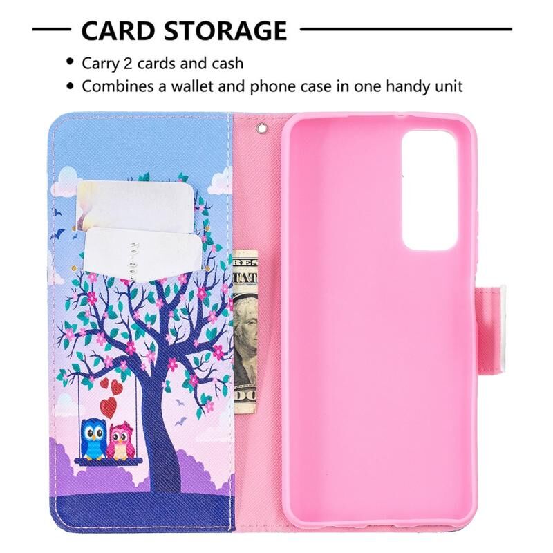Θήκη δέρματος οριζόντιας αναδίπλωσης με σχέδιο έγχρωμης ζωγραφικής για Huawei P smart 2021 / Y7a με βάση στήριξης & υποδοχές καρτών & πορτοφόλι (Δέντρο)