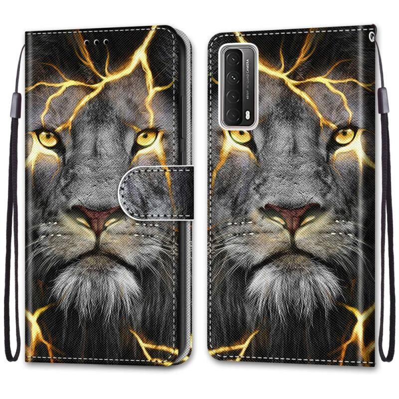 Θήκη Huawei P Smart 2021 / Y7a με πολύχρωμο σχέδιο, υφή σταυρού, οριζόντιο άνοιγμα, από δερματίνη PU με βάση στήριξης & θήκες καρτών & πορτοφόλι & κορδόνι (Fission Lion)