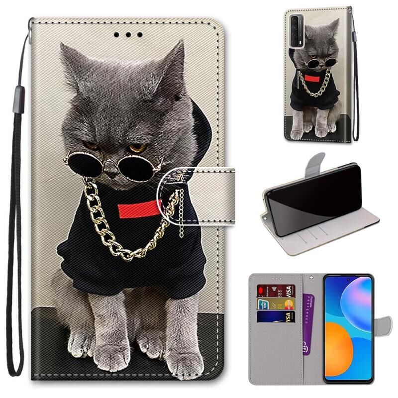 Θήκη Huawei P smart 2021 / Y7a με σχέδιο ζωγραφικής, υφή σταυρού, οριζόντιο άνοιγμα, από δερματίνη PU με βάση στήριξης & θήκες καρτών & πορτοφόλι & κορδόνι (Πράσινο Λεμόνι)