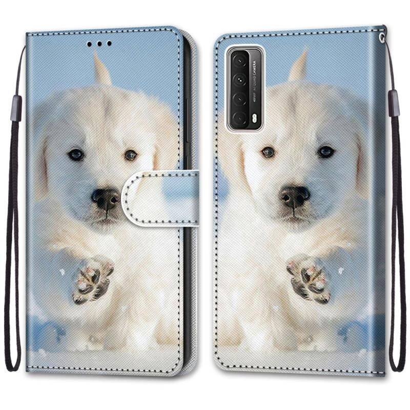 Θήκη Huawei P Smart 2021 / Y7a με σχέδιο πολύχρωμης ζωγραφικής, υφή σταυρού, οριζόντια αναδίπλωση από δερματίνη PU με βάση στήριξης & θήκες καρτών & πορτοφόλι & κορδόνι (Snow Puppy)