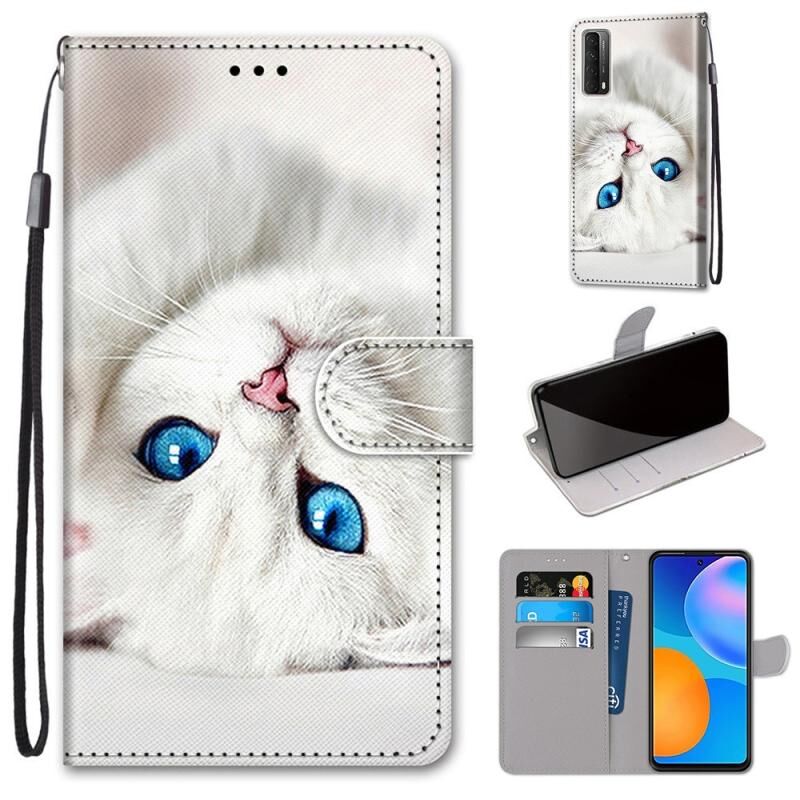 Θήκη Huawei P Smart 2021 / Y7a με πολύχρωμο σχέδιο, υφή σταυρού, οριζόντιο άνοιγμα, από δερματίνη PU με βάση στήριξης & θήκες καρτών & πορτοφόλι & κορδόνι (Ροζ Λουλούδια, Γέφυρα του Πύργου)