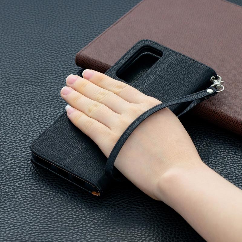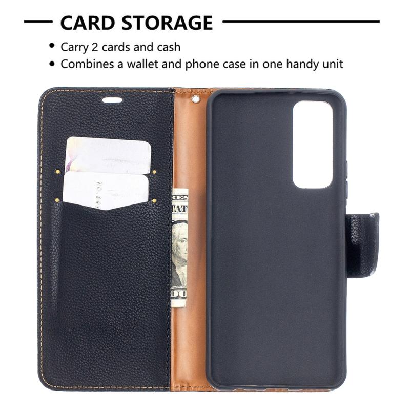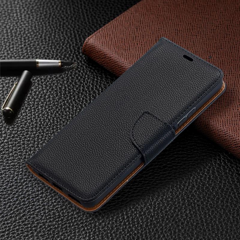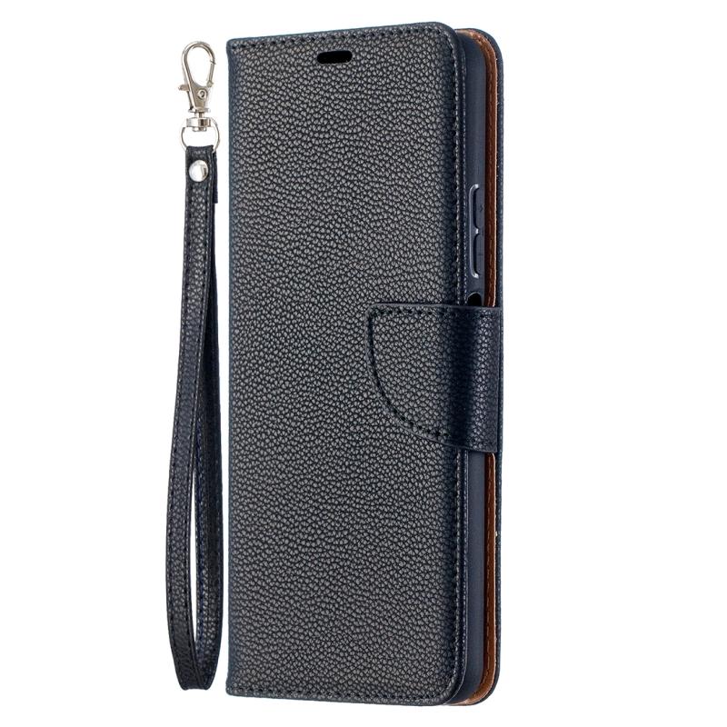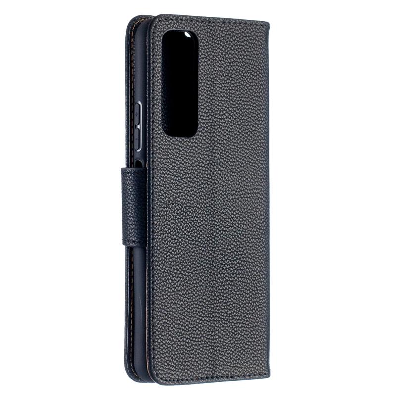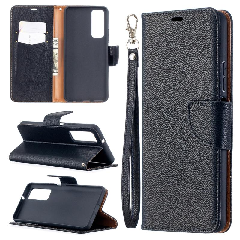 For Huawei P smart 2021 / Y7a Litchi Texture Pure Color Horizontal Flip PU Leather Case with Holder & Card Slots & Wallet & Lanyard(Black)