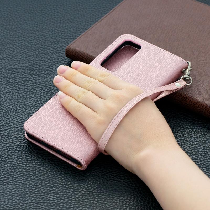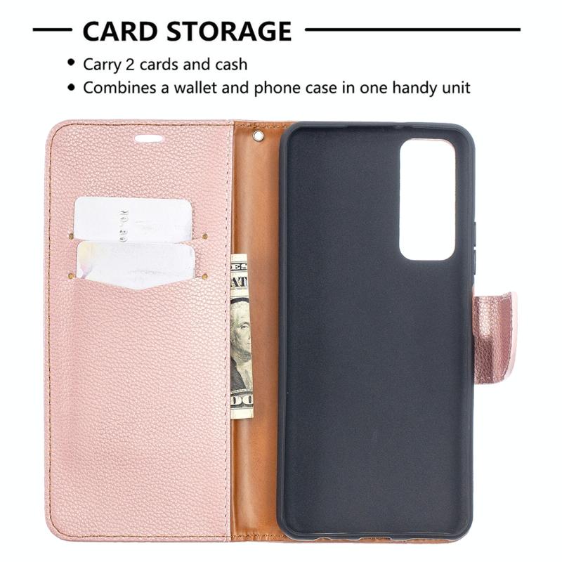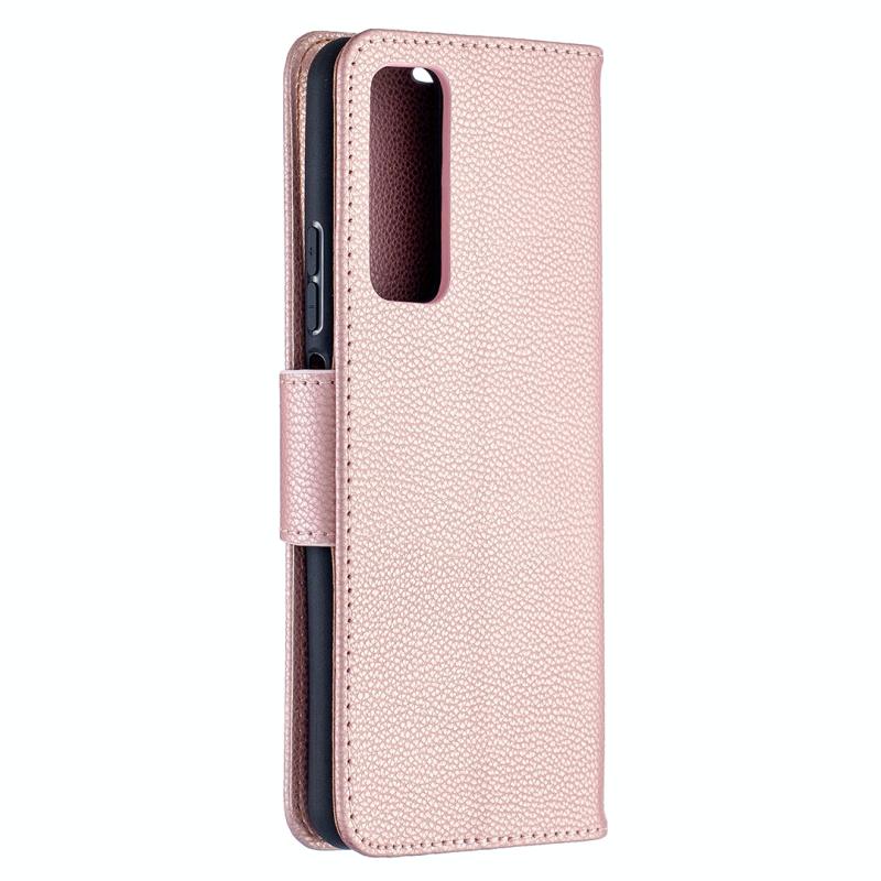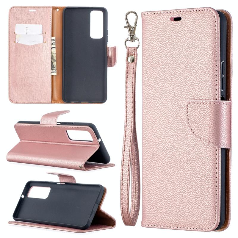 For Huawei P smart 2021 / Y7a Litchi Texture Pure Color Horizontal Flip PU Leather Case with Holder & Card Slots & Wallet & Lanyard(Rose Gold)