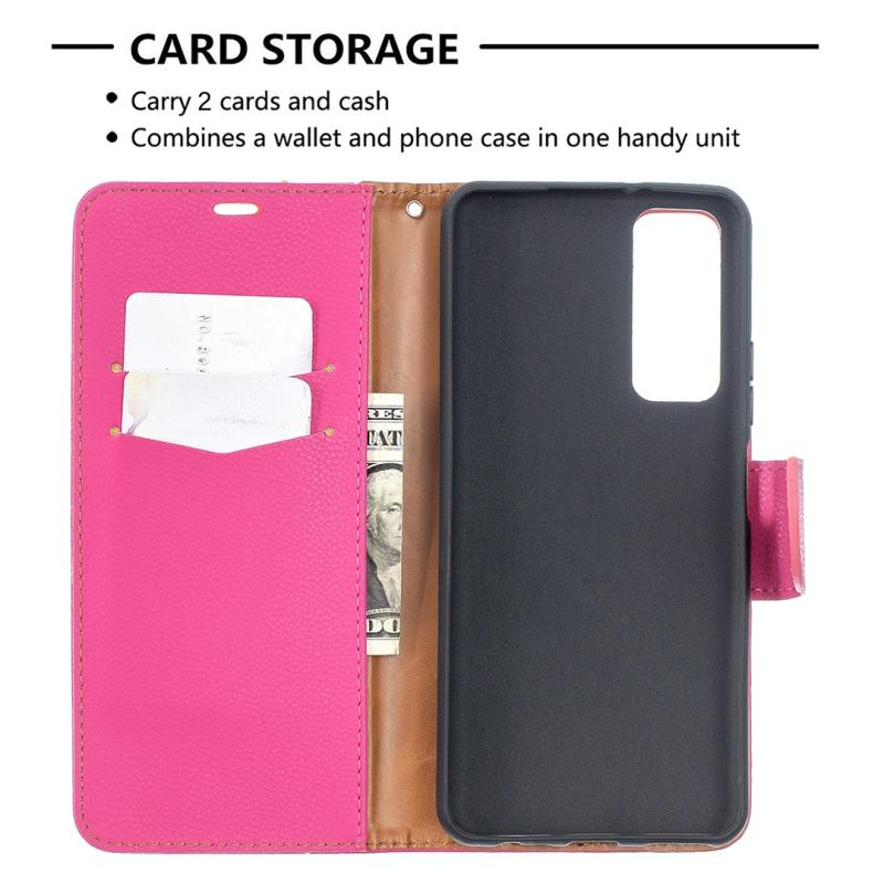 Θήκη Huawei P smart 2021 / Y7a με υφή Λίτσι, απλό χρώμα, οριζόντια αναδίπλωση, από δέρμα PU με βάση στήριξης & θήκες καρτών & πορτοφόλι & κορδόνι (Χρυσό Ρόδι)