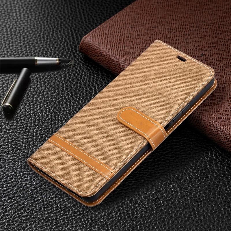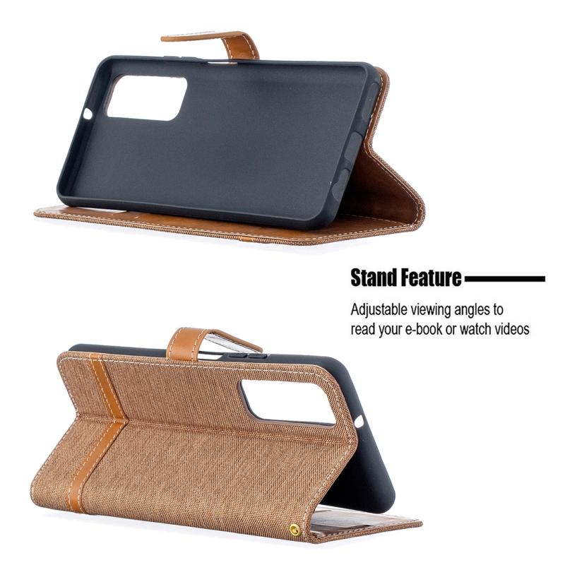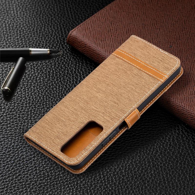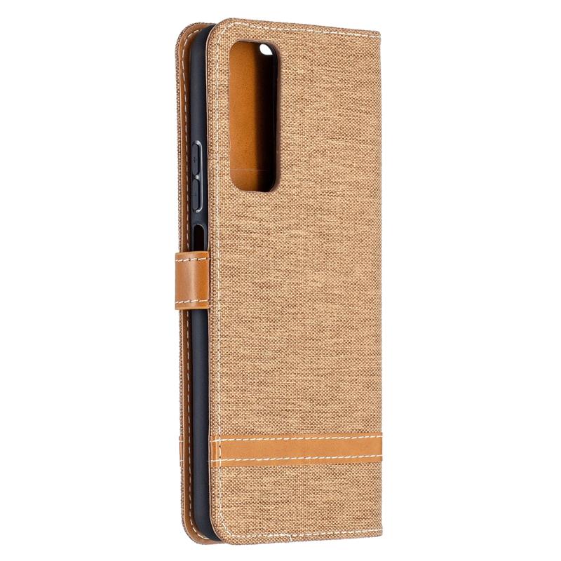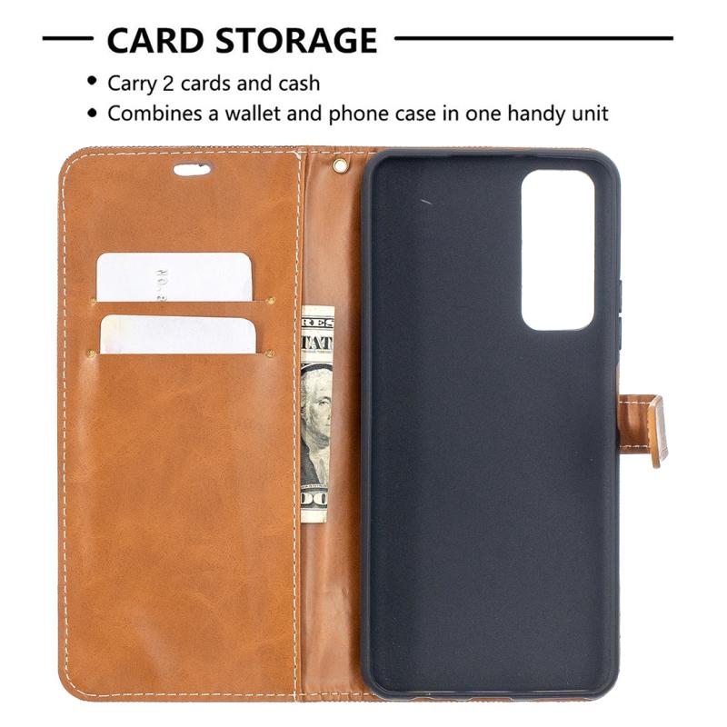Θήκη δέρματος οριζόντιας αναδίπλωσης με υφή τζιν και αντιστοίχιση χρωμάτων για Huawei P smart 2021 / Y7a Lite, με βάση στήριξης, θήκες καρτών, πορτοφόλι και κορδόνι (Κόκκινο Ρόδι)