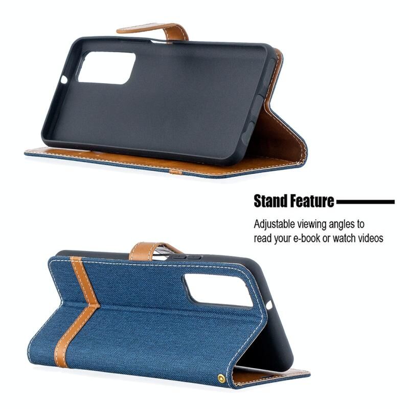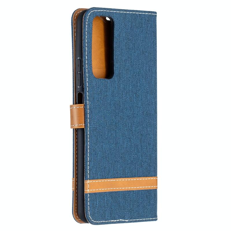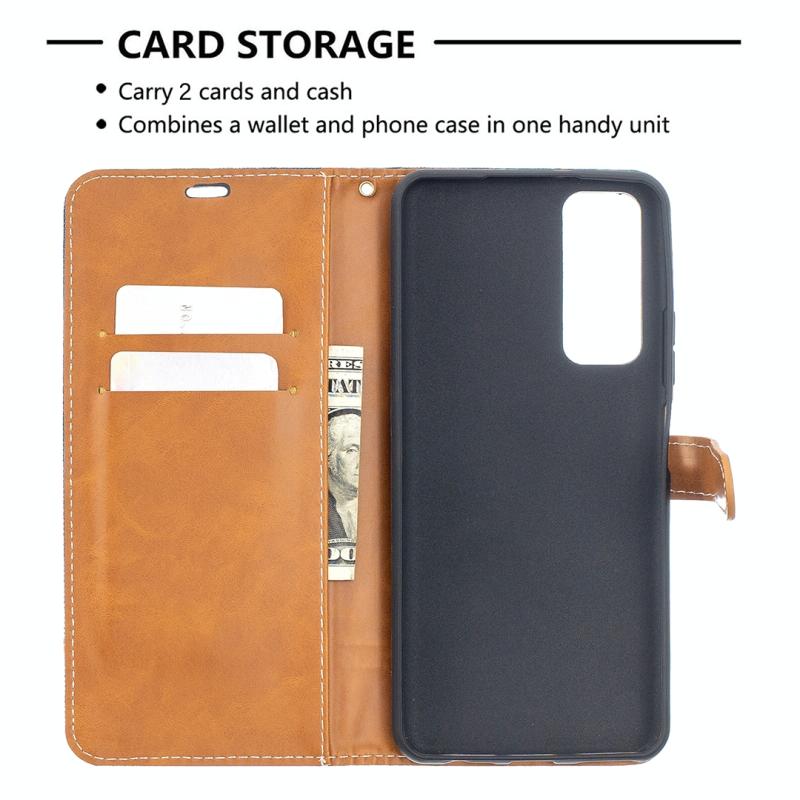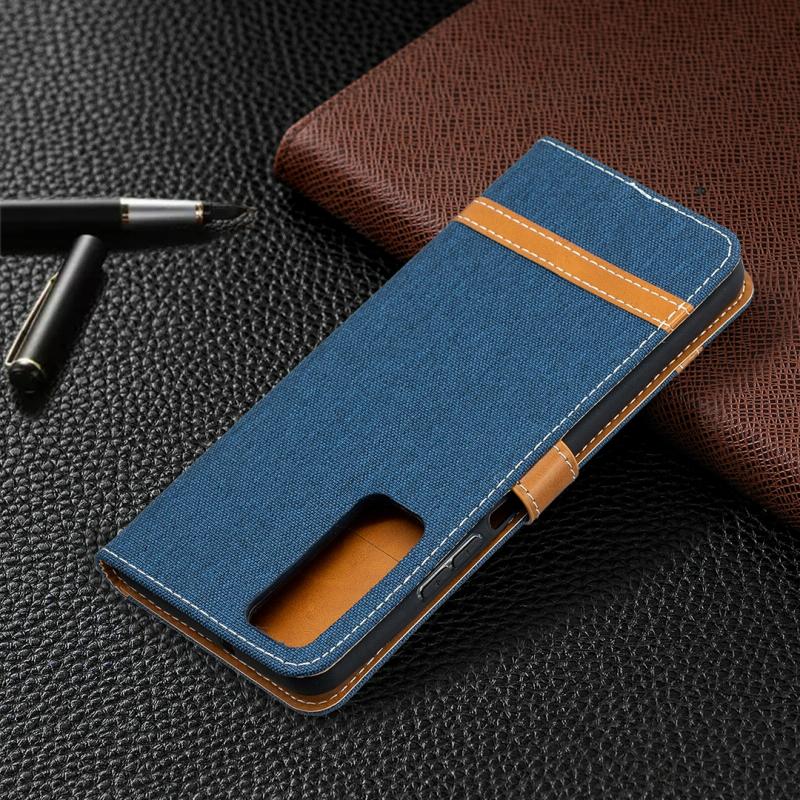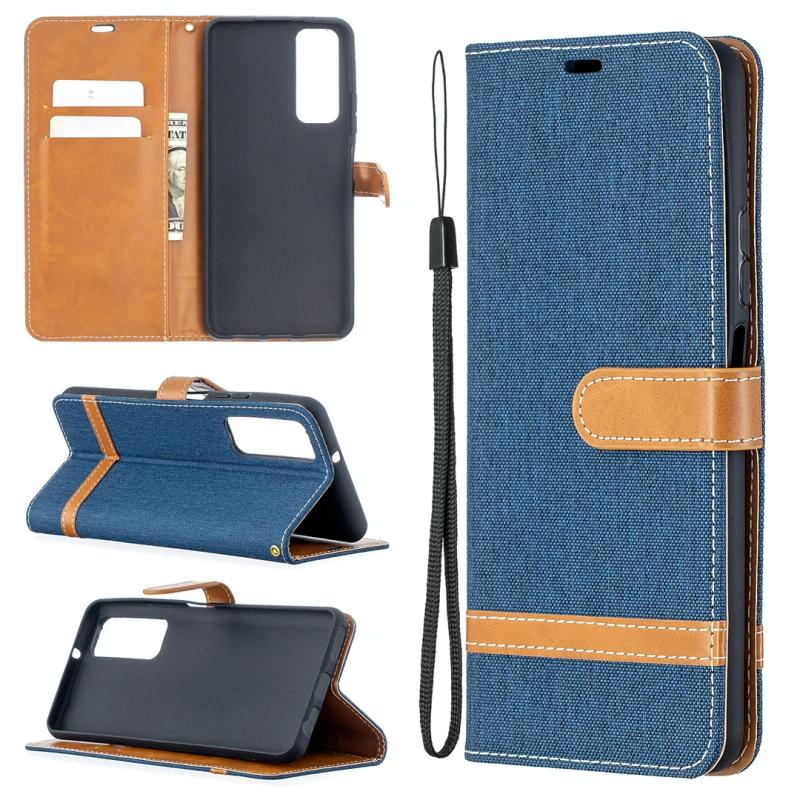 Θήκη δέρματος οριζόντιας αναδίπλωσης με υφή τζιν και αντιστοίχιση χρωμάτων για Huawei P smart 2021 / Y7a Lite, με βάση στήριξης, θήκες καρτών, πορτοφόλι και κορδόνι (Κόκκινο Ρόδι)