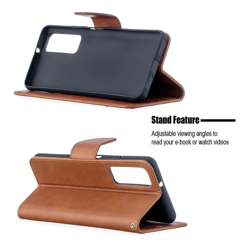 Θήκη Huawei P smart 2021 / Y7a με υφή retro δέρματος αρνιού, απλό χρώμα, οριζόντια αναδιπλούμενη από δερματίνη PU με βάση στήριξης & θήκες καρτών & πορτοφόλι & κορδόνι (Κόκκινο)