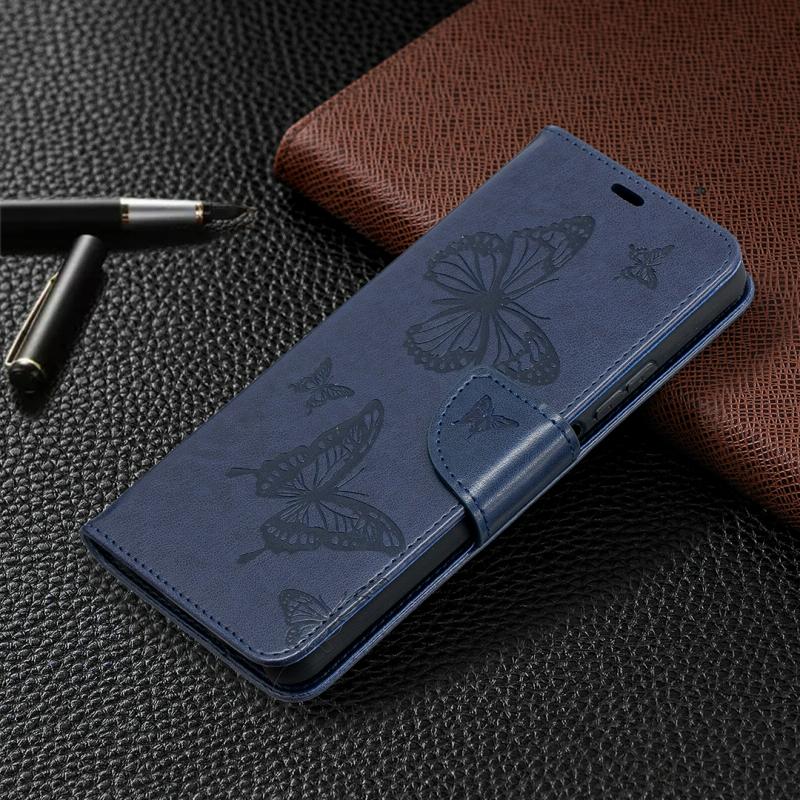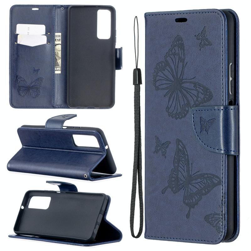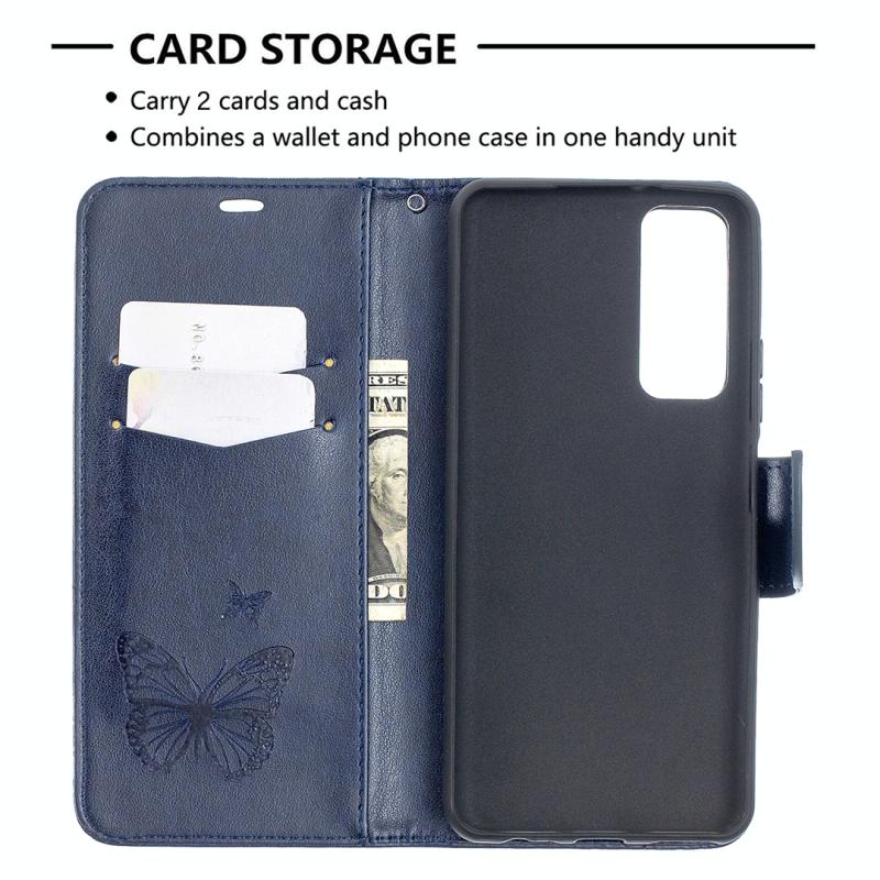 Θήκη Huawei P smart 2021 / Y7a Δερμάτινη οριζόντια με σχέδιο ανάγλυφου πεταλούδας, με βάση στήριξης, θήκη για κάρτες, πορτοφόλι & λουρί (Χρυσό ροζ)