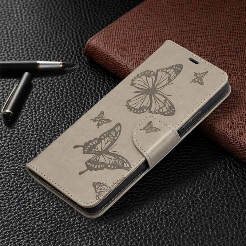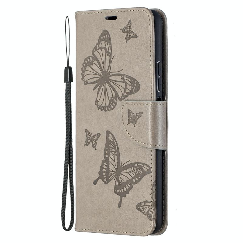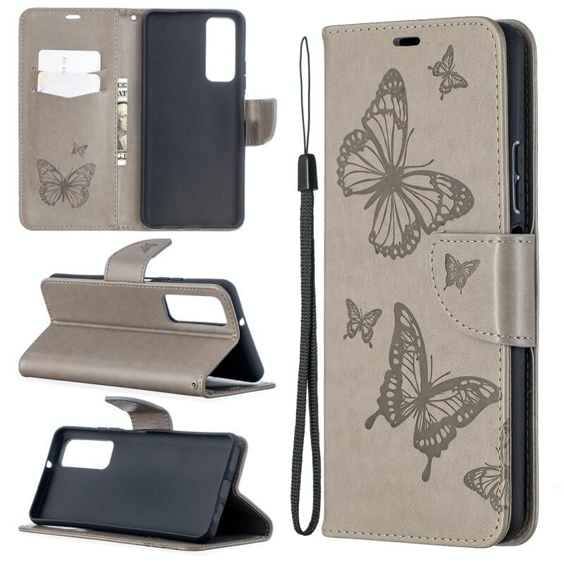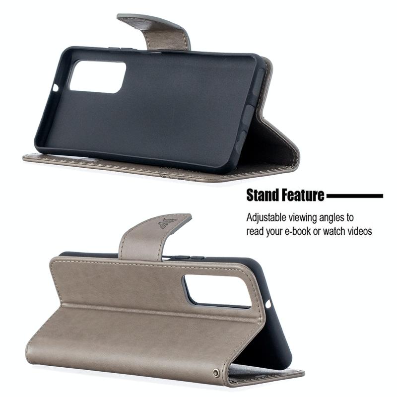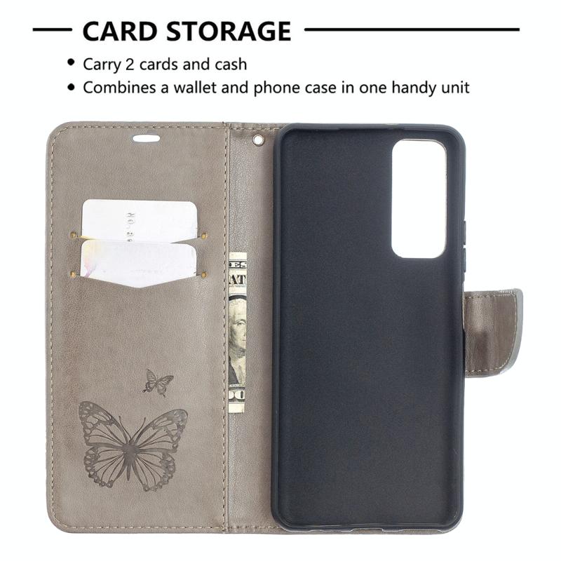 Θήκη Huawei P smart 2021 / Y7a Δερμάτινη οριζόντια με σχέδιο ανάγλυφου πεταλούδας, με βάση στήριξης, θήκη για κάρτες, πορτοφόλι & λουρί (Χρυσό ροζ)