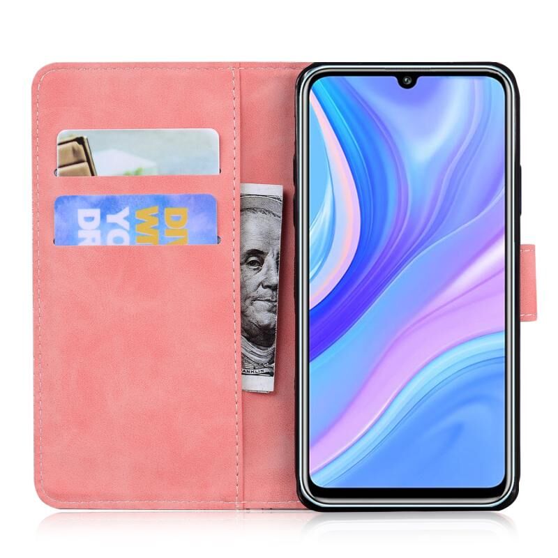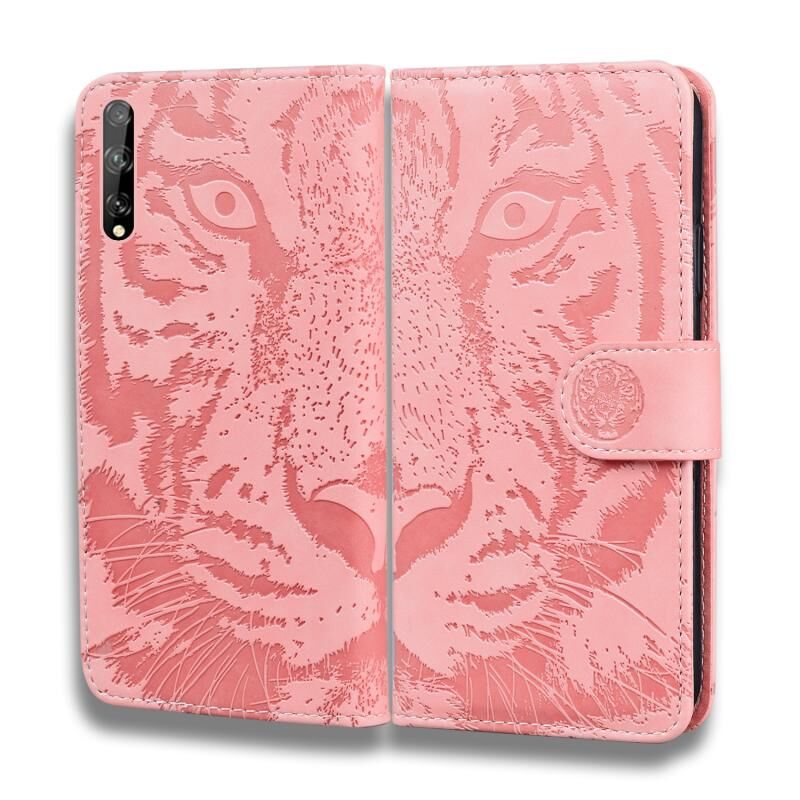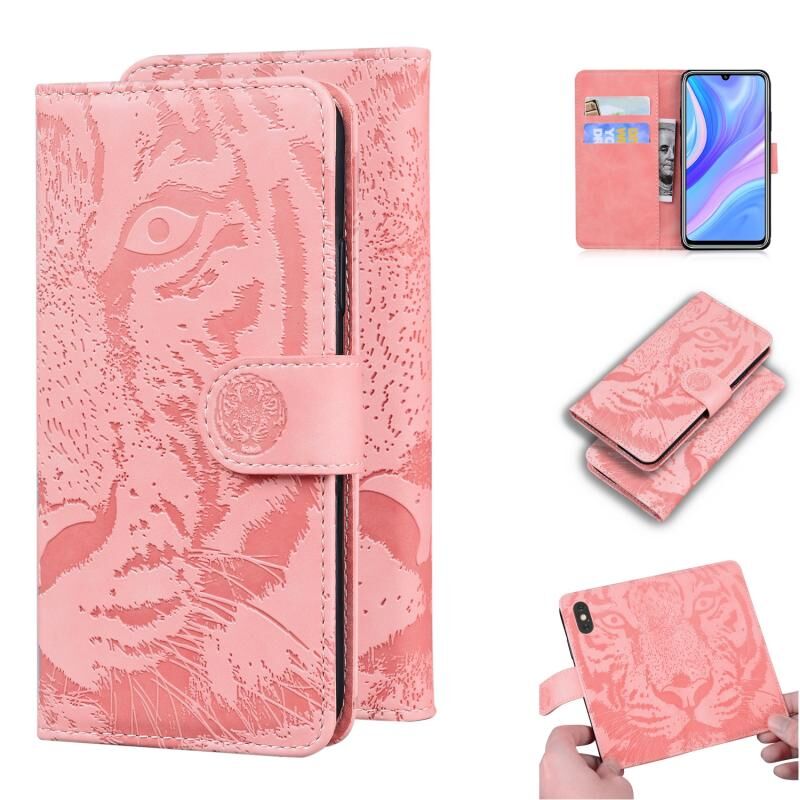 Θήκη δέρματος οριζόντιας αναδίπλωσης με ανάγλυφο σχέδιο τίγρης για Huawei P smart S / Enjoy 10S με βάση στήριξης & υποδοχές καρτών & πορτοφόλι (ρόζ)