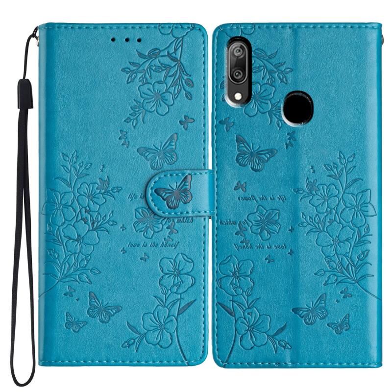 Θήκη τηλεφώνου από δέρμα με πεταλούδες και λουλούδια για Huawei P Smart Z (Μπλε)