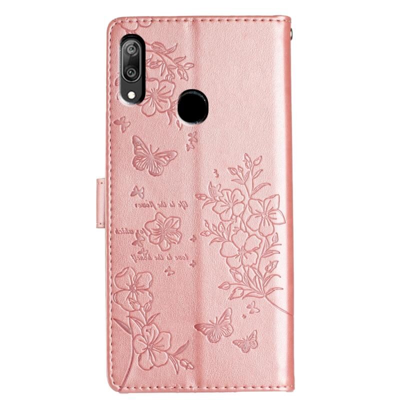Θήκη τηλεφώνου από δέρμα με πεταλούδες και λουλούδια για Huawei P Smart Z (Μαύρο)