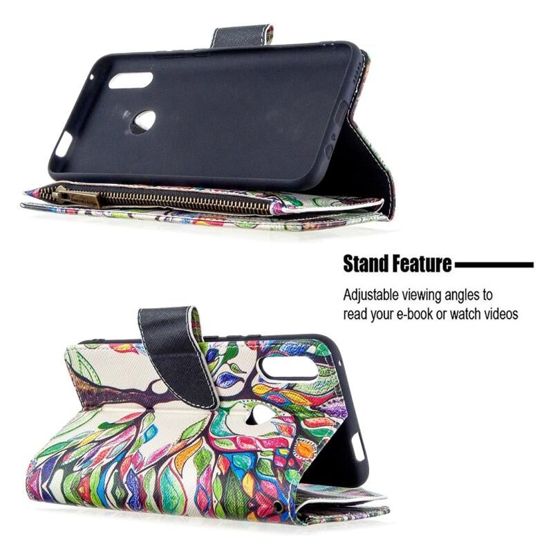 Θήκη Huawei P Smart Z με έγχρωμο σχέδιο, οριζόντια αναδιπλούμενη από δέρμα με φερμουάρ, βάση στήριξης & θήκες για κάρτες & πορτοφόλι (Δέντρο)