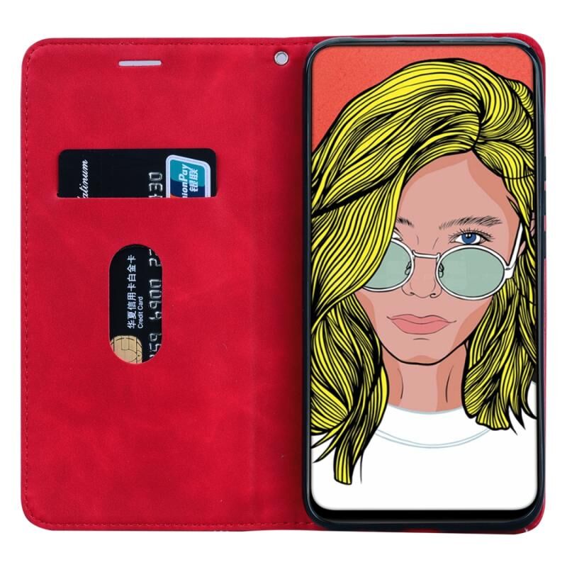 Θήκη Huawei P Smart Z Ματ Επιχειρηματική Μαγνητική Οριζόντια Δερμάτινη PU με Στήριξη & Θήκη Καρτών & Λουρί (Κόκκινο)