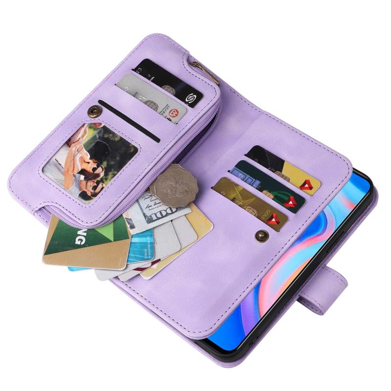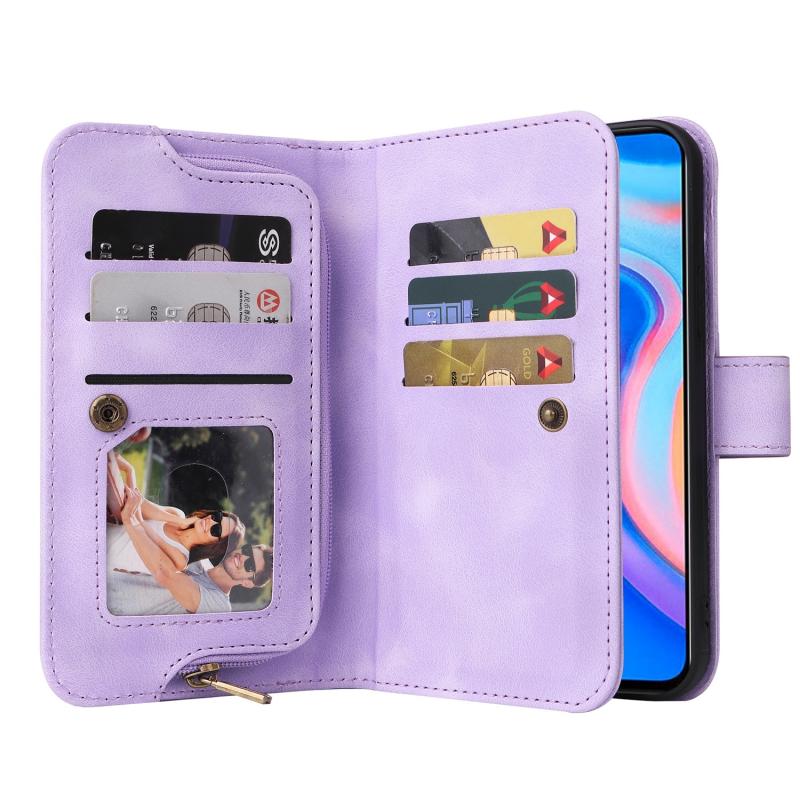 Θήκη τηλεφώνου Huawei P Smart Z από δέρμα με πολλαπλές θήκες καρτών και φερμουάρ (Μπλε)