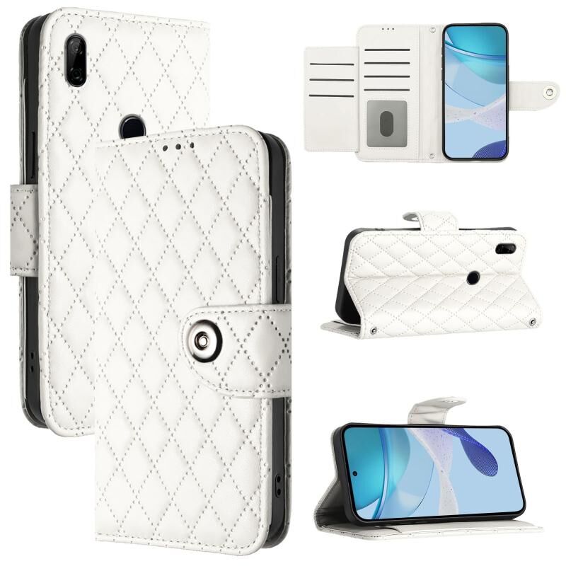 Για το Huawei P Smart Z / Y9 Prime 2019 Rhombic Texture Flip δερμάτινη θήκη τηλεφώνου με κορδόνι (λευκό)
