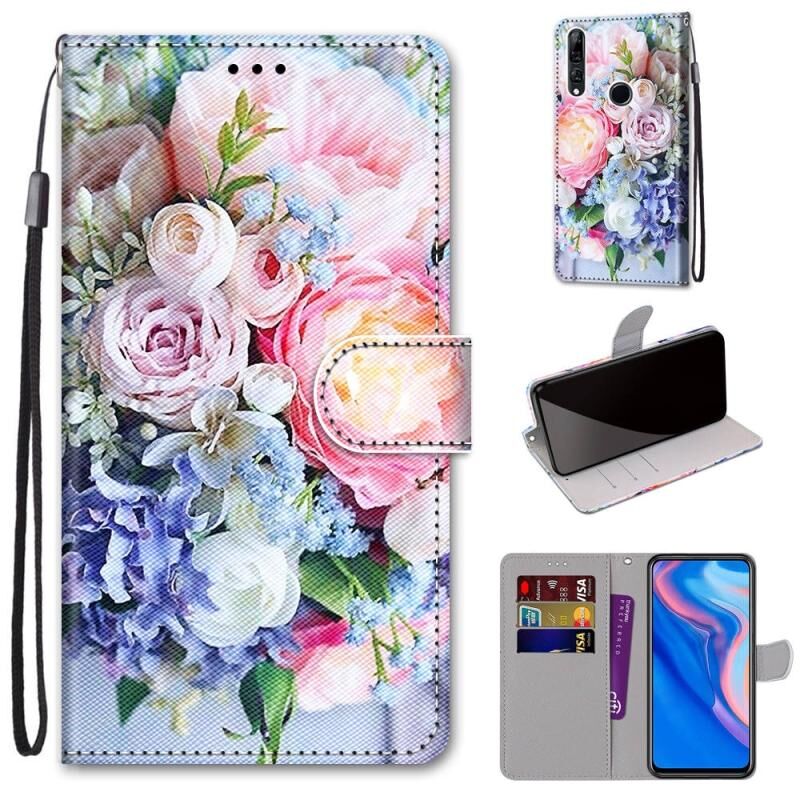 Θήκη Huawei P smart Z / Y9 Prime με πολύχρωμο σχέδιο, υφή σταυρού, οριζόντια αναδίπλωση από δερματίνη PU με βάση στήριξης, θήκες για κάρτες, πορτοφόλι & λουρί (Πράσινο Λεμόνι)