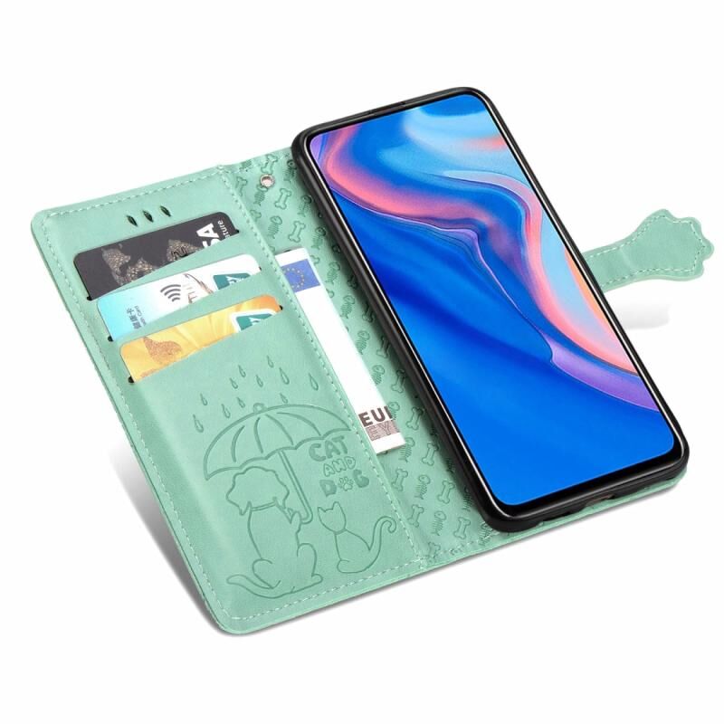 Θήκη Huawei P Smart Z / Y9 Prime 2019, χαριτωμένη ανάγλυφη θήκη οριζόντιας αναδίπλωσης από δερματίνη PU με βάση / υποδοχή κάρτας / πορτοφόλι / κορδόνι (Πράσινο του γρασιδιού)