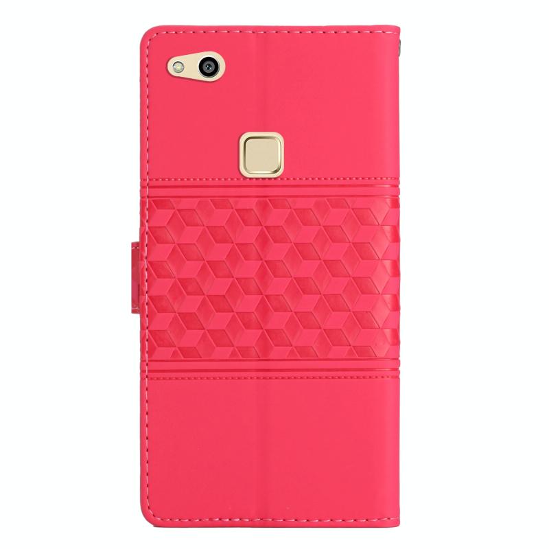 Θήκη τηλεφώνου Huawei P10 Lite με δερμάτινη υφή, ανάγλυφο σχέδιο διαμαντιού και κορδόνι (Κόκκινο)