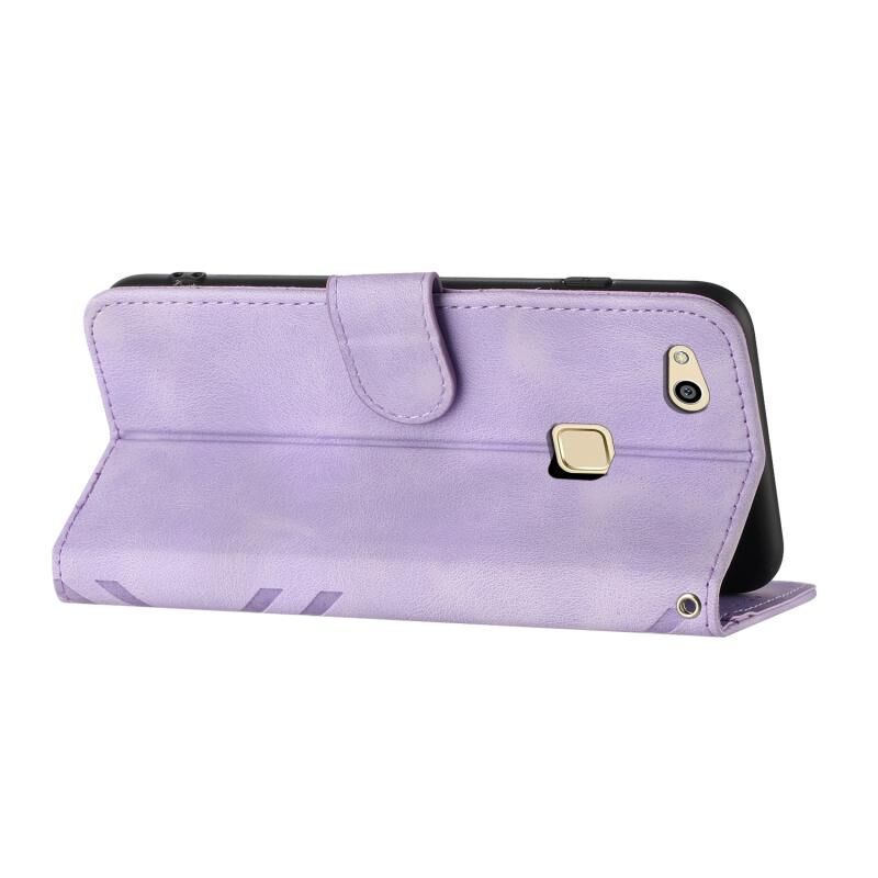 Θήκη τηλεφώνου Huawei P10 Lite με σχέδιο γραμμής και υφή δέρματος (ανοιχτό μωβ)