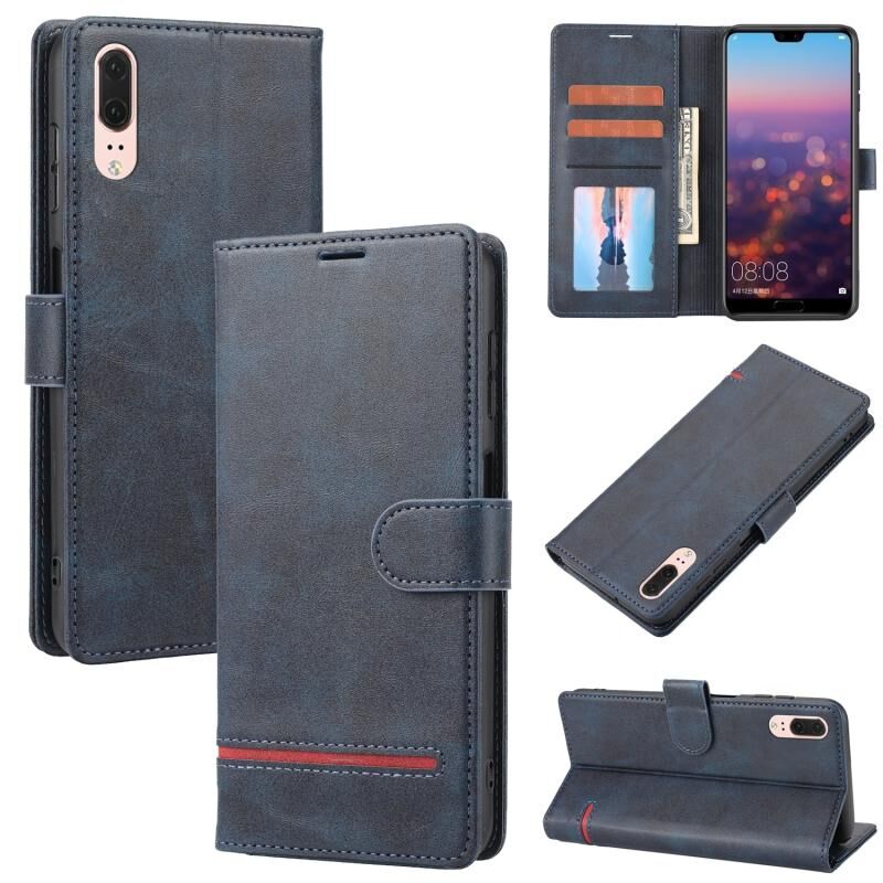 Για Huawei P20 Κλασικό πορτοφόλι Flip υπόθεση τηλεφώνου δερμάτινη θήκη (μπλε)