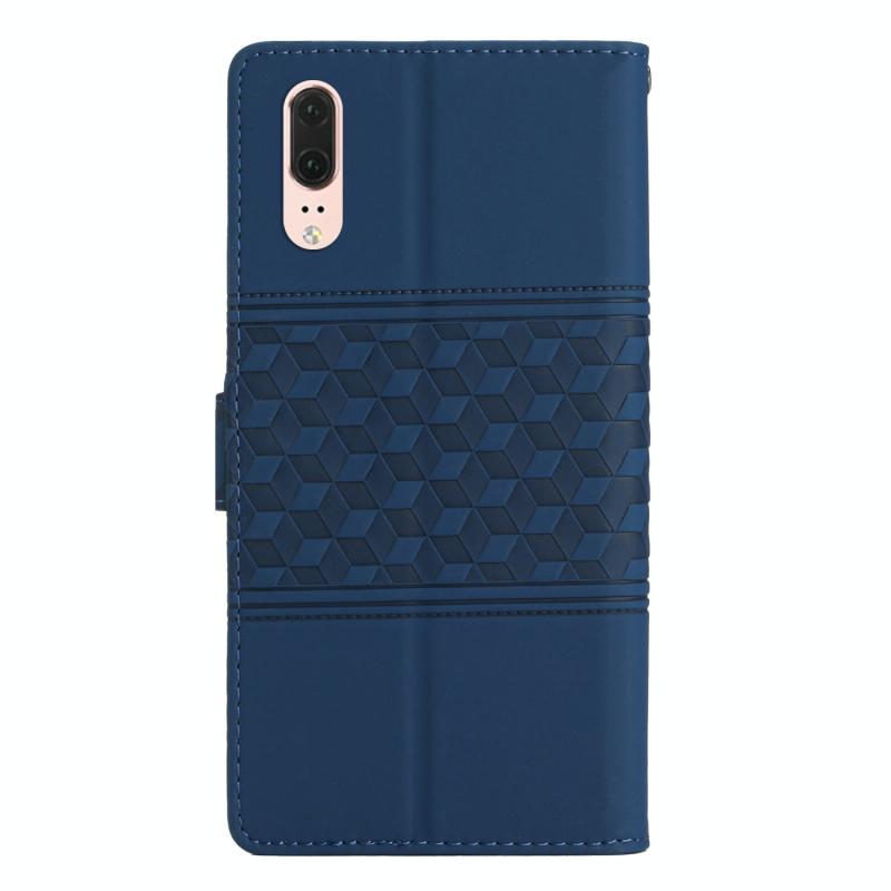Θήκη τηλεφώνου Huawei P20 με δερμάτινη υφή, ανάγλυφο διαμαντιού, με κορδόνι (Σκούρο μπλε)
