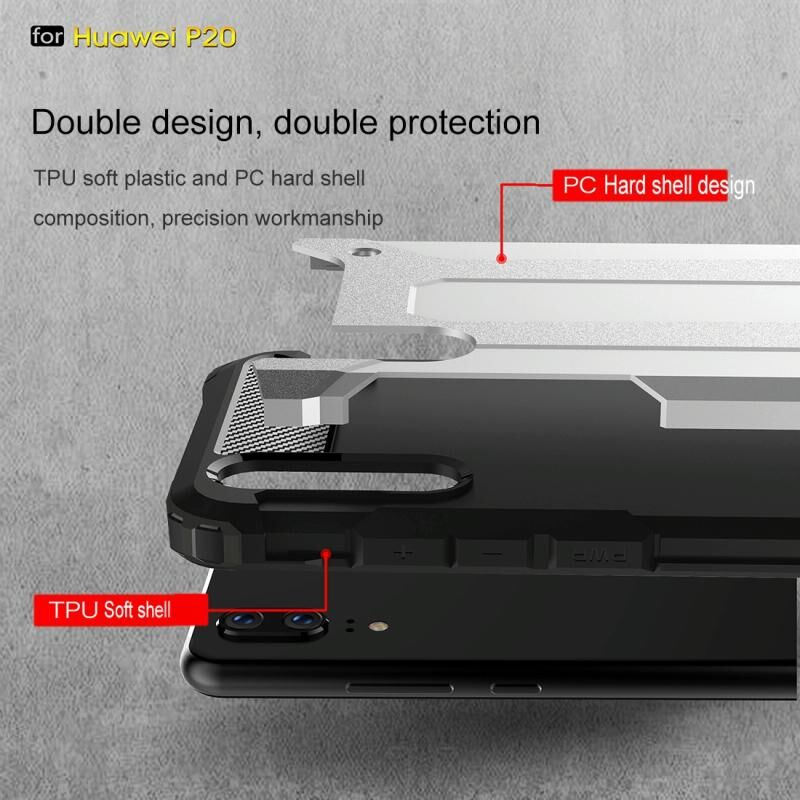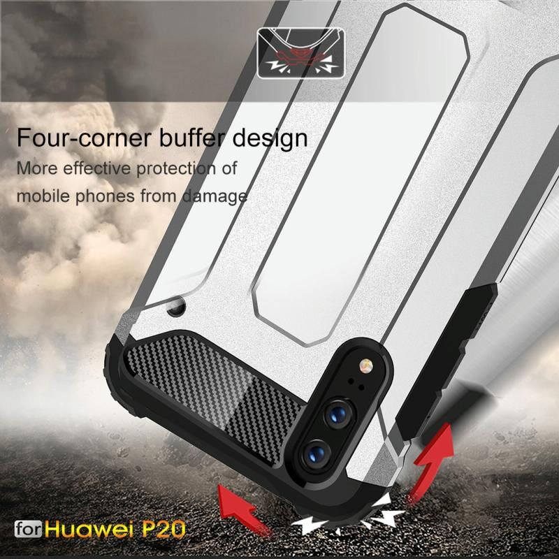 Θήκη Πλήρους Προστασίας για Huawei P20, Συνδυασμός TPU + PC, Ανθεκτική (Ασημί)