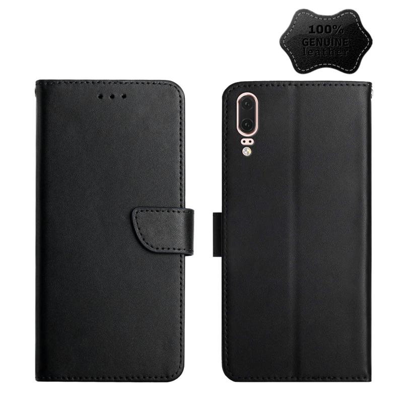 Θήκη τηλεφώνου Huawei P20 από γνήσιο δέρμα, οριζόντια, με μαγνητικό κλείσιμο και προστασία από δακτυλικά αποτυπώματα (Μπλε)