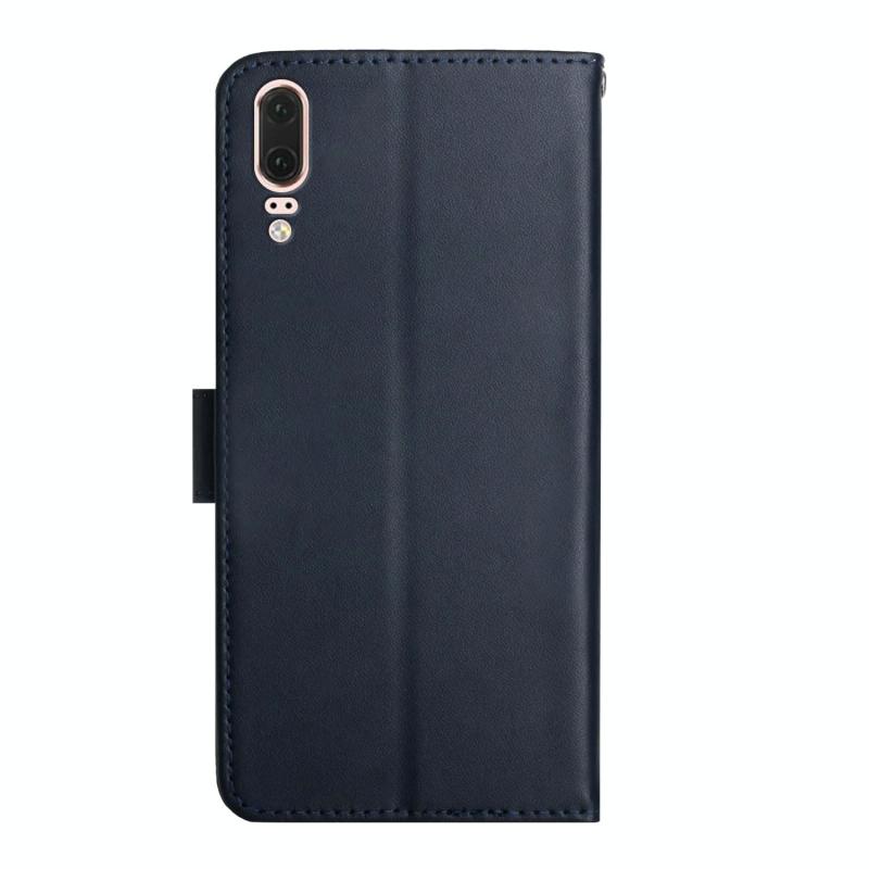 Θήκη τηλεφώνου Huawei P20 από γνήσιο δέρμα, οριζόντια, με μαγνητικό κλείσιμο και προστασία από δακτυλικά αποτυπώματα (Μπλε)
