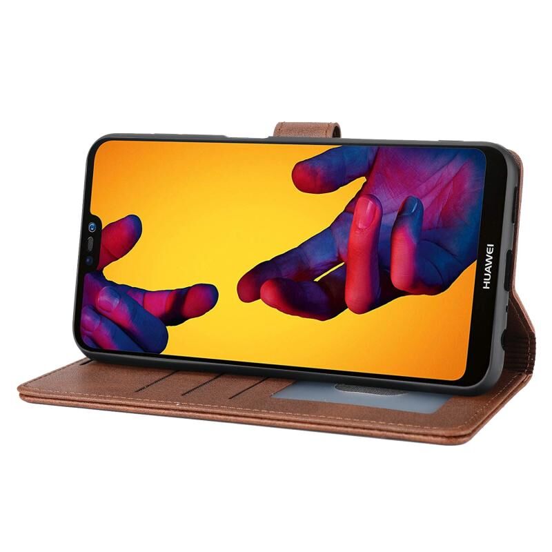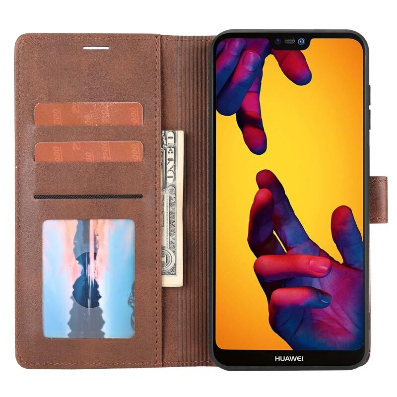 Για το Huawei P20 Lite Classic πορτοφόλι Flip υπόθεση τηλεφώνου δερμάτινη θήκη (καφέ)