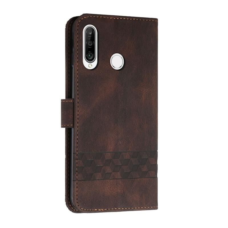For Huawei P20 Lite Cubic Skin Feel Flip Leather Phone Case(Dark Brown)