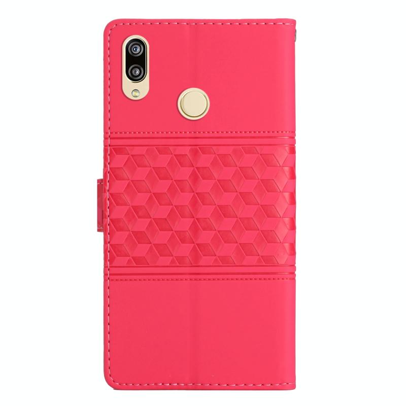 Θήκη τηλεφώνου Huawei P20 Lite με δερμάτινη υφή, ανάγλυφο σχέδιο διαμαντιού και κορδόνι (Κόκκινο)