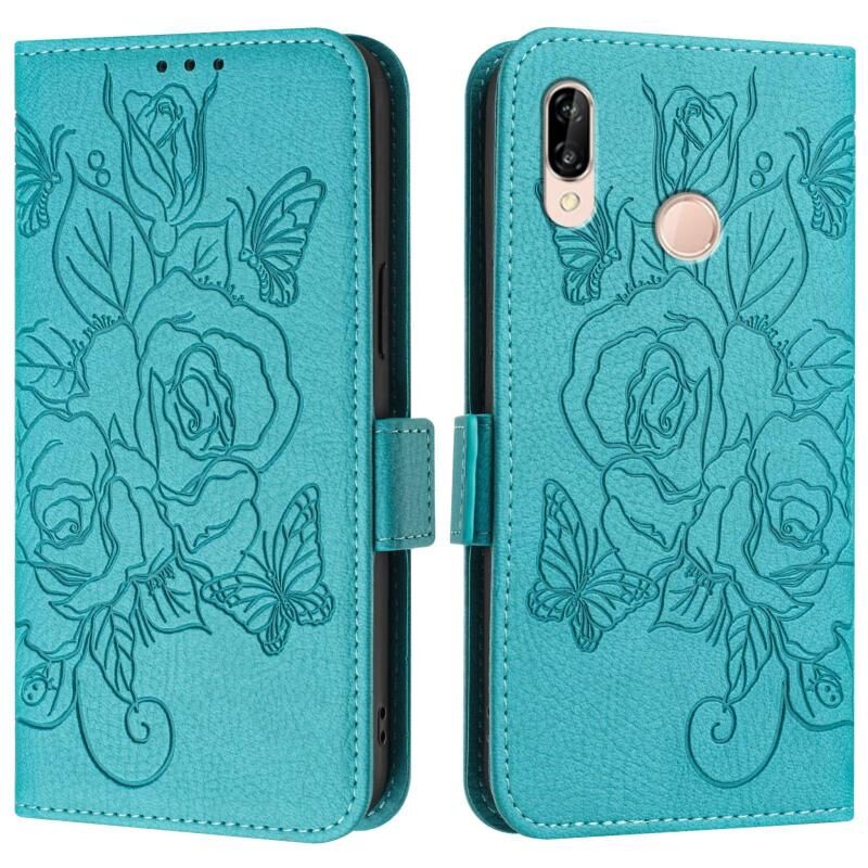 Για Huawei P20 Lite / nova 3e ανάγλυφο Rose RFID Anti-theft Δερμάτινη θήκη τηλεφώνου (γαλάζιο)