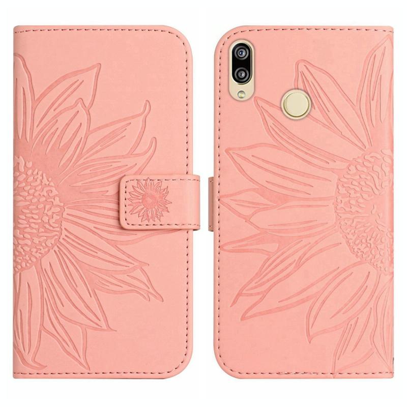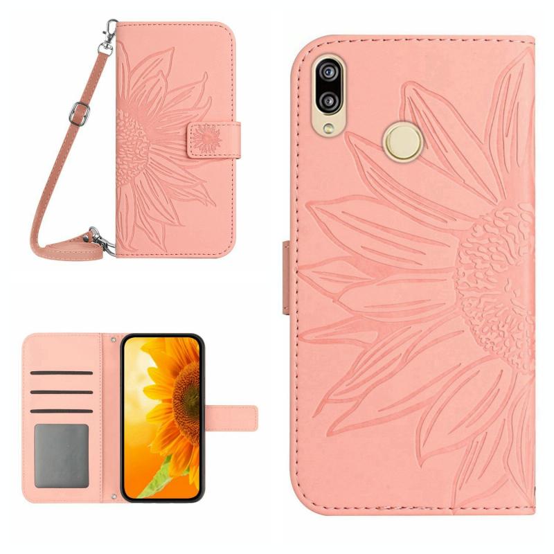 Θήκη τηλεφώνου Huawei P20 Lite με αίσθηση δέρματος, σχέδιο ηλίανθου, τύπου flip με λουρί (Πράσινο)