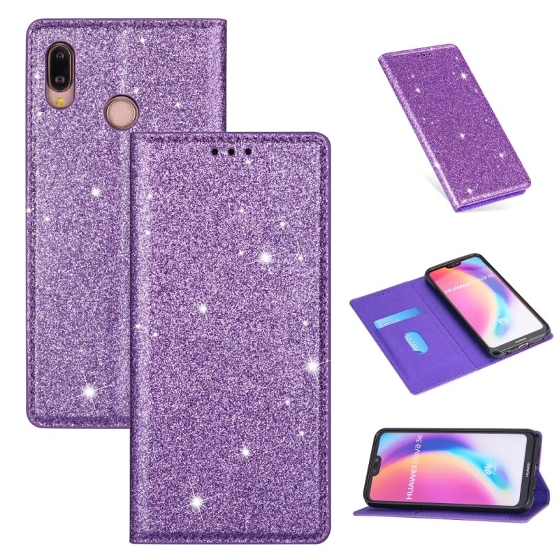 Για Huawei P20 Lite Ultrathin Glitter μαγνητική οριζόντια Flip δερμάτινη θήκη με υποδοχή & υποδοχές καρτών (μωβ)