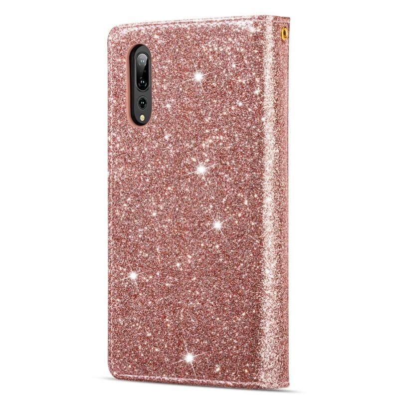 Θήκη δέρματος οριζόντιας αναδίπλωσης με φερμουάρ, γυαλιστερή, με χάραξη λέιζερ αστρικού ουρανού, για Huawei P20, με πολλαπλές θήκες καρτών, βάση στήριξης, πορτοφόλι & λουρί (Μαύρο)