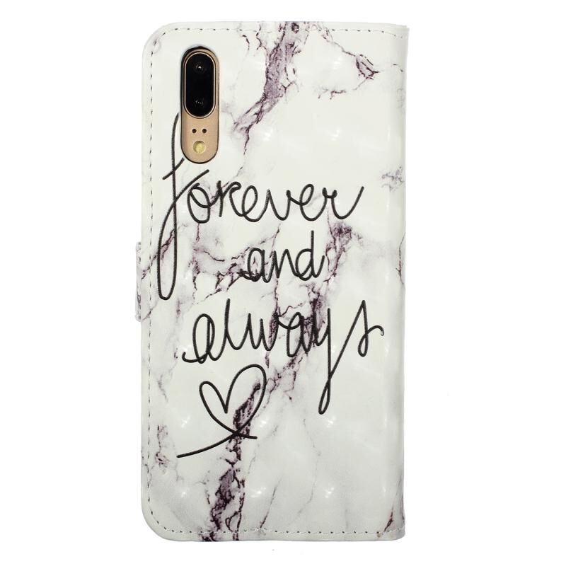 Θήκη τηλεφώνου Huawei P20 με ανάγλυφο σχέδιο λαδιού και δέρμα σε 3D (Μάρμαρο με λέξεις)