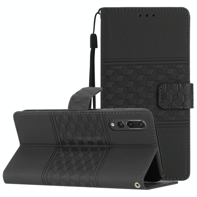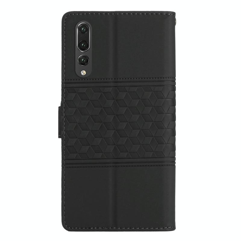 Θήκη τηλεφώνου Huawei P20 Pro με δερμάτινη υφή, ανάγλυφο διαμαντιού και λουρί (Μαύρο)