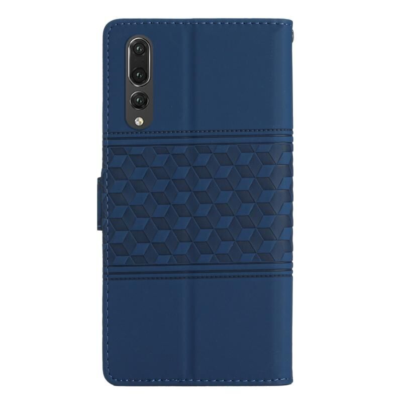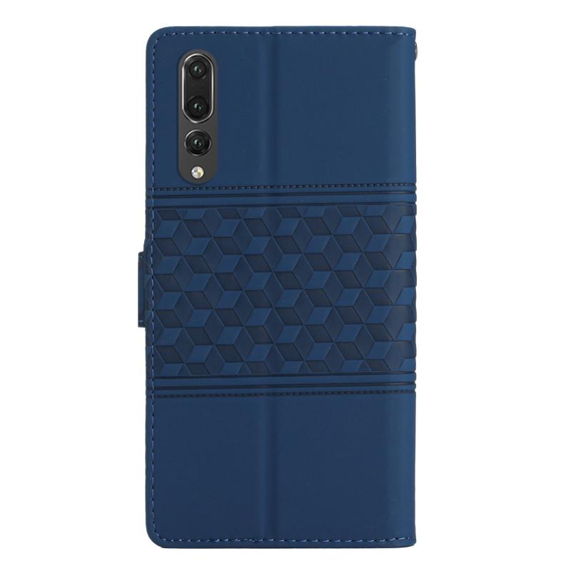 Θήκη τηλεφώνου Huawei P20 Pro με δερμάτινη υφή, ανάγλυφο διαμαντιού και λουρί (Σκούρο μπλε)