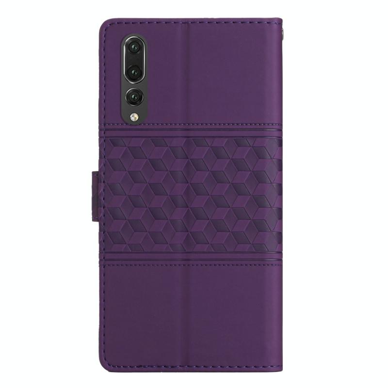 Θήκη τηλεφώνου Huawei P20 Pro με δερμάτινη υφή, ανάγλυφο διαμαντιού και λουρί (Μωβ)