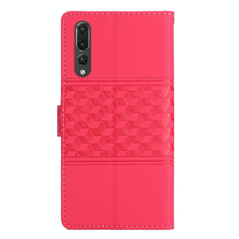 Θήκη τηλεφώνου Huawei P20 Pro με δερμάτινη υφή, ανάγλυφο διαμαντιού και λουρί (Κόκκινο)