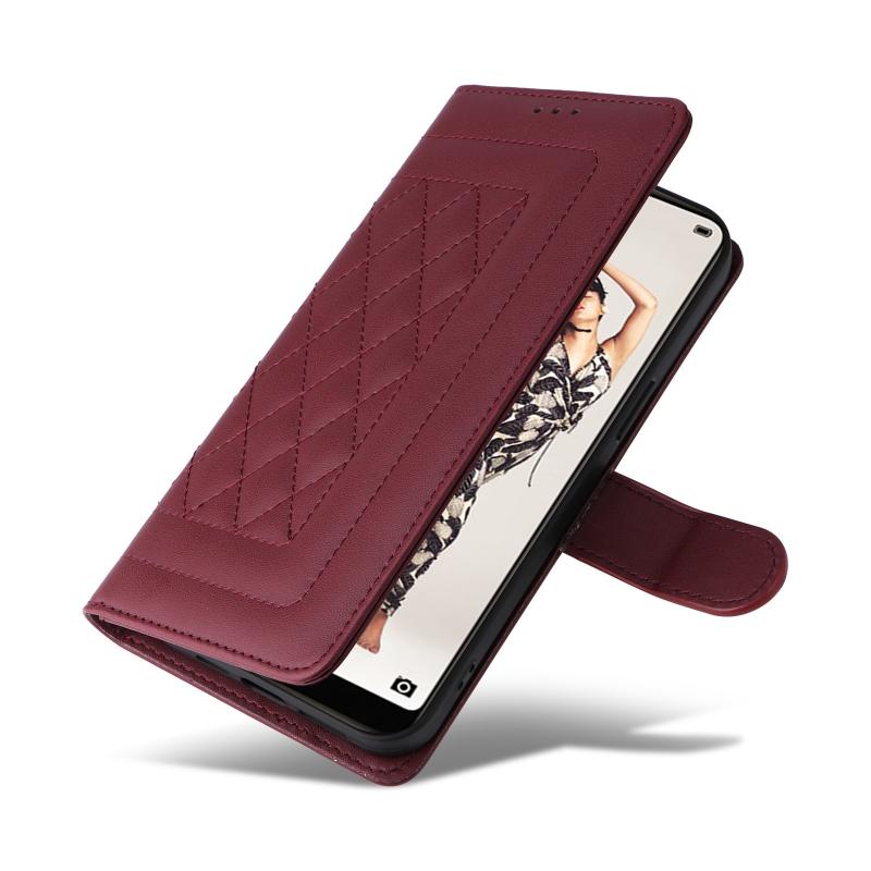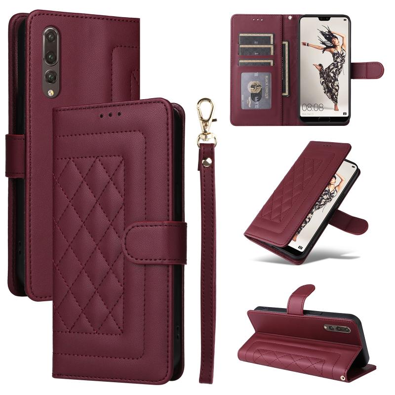 For Huawei P20 Pro Diamond Lattice Leather Flip Phone Case(Wine Red)
